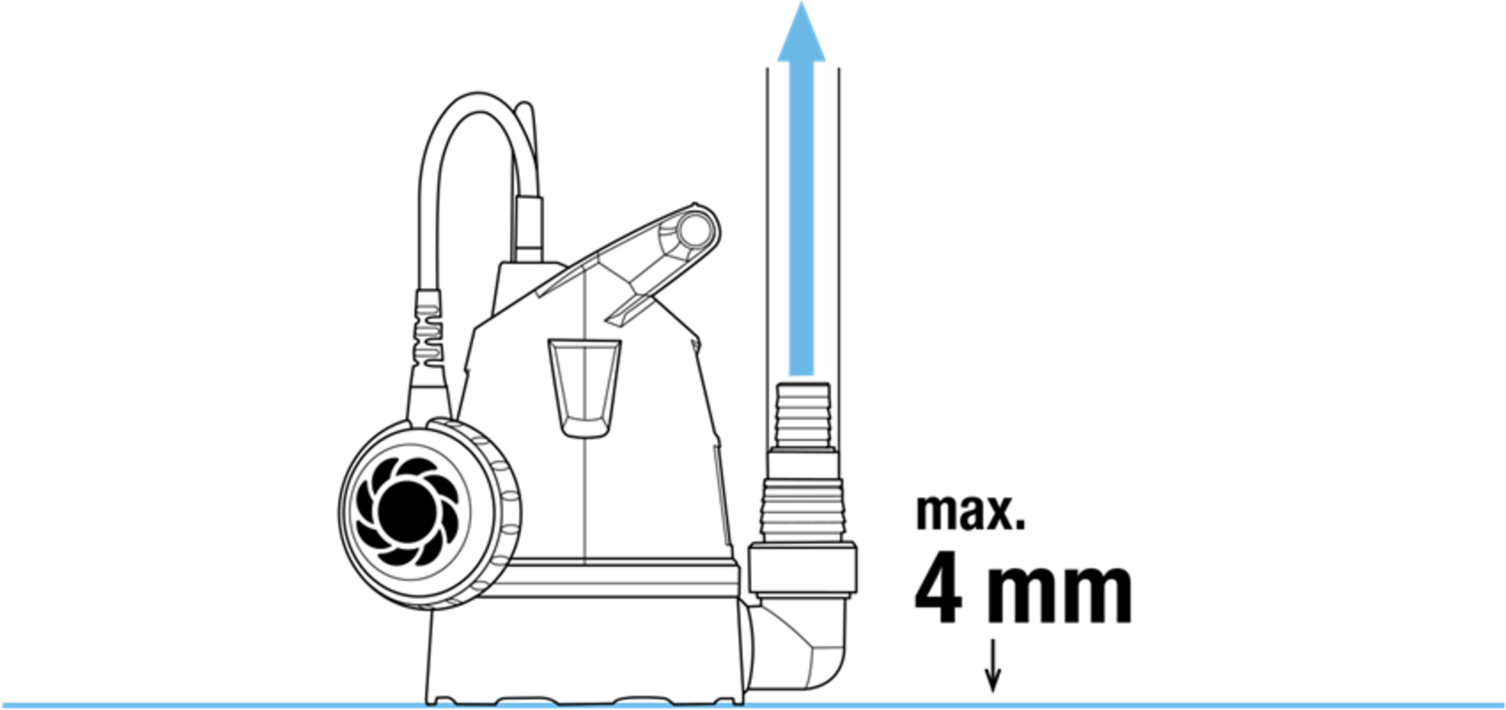 - Pode aspirar a água quase completamente, até uma profundidade de 4 mm
