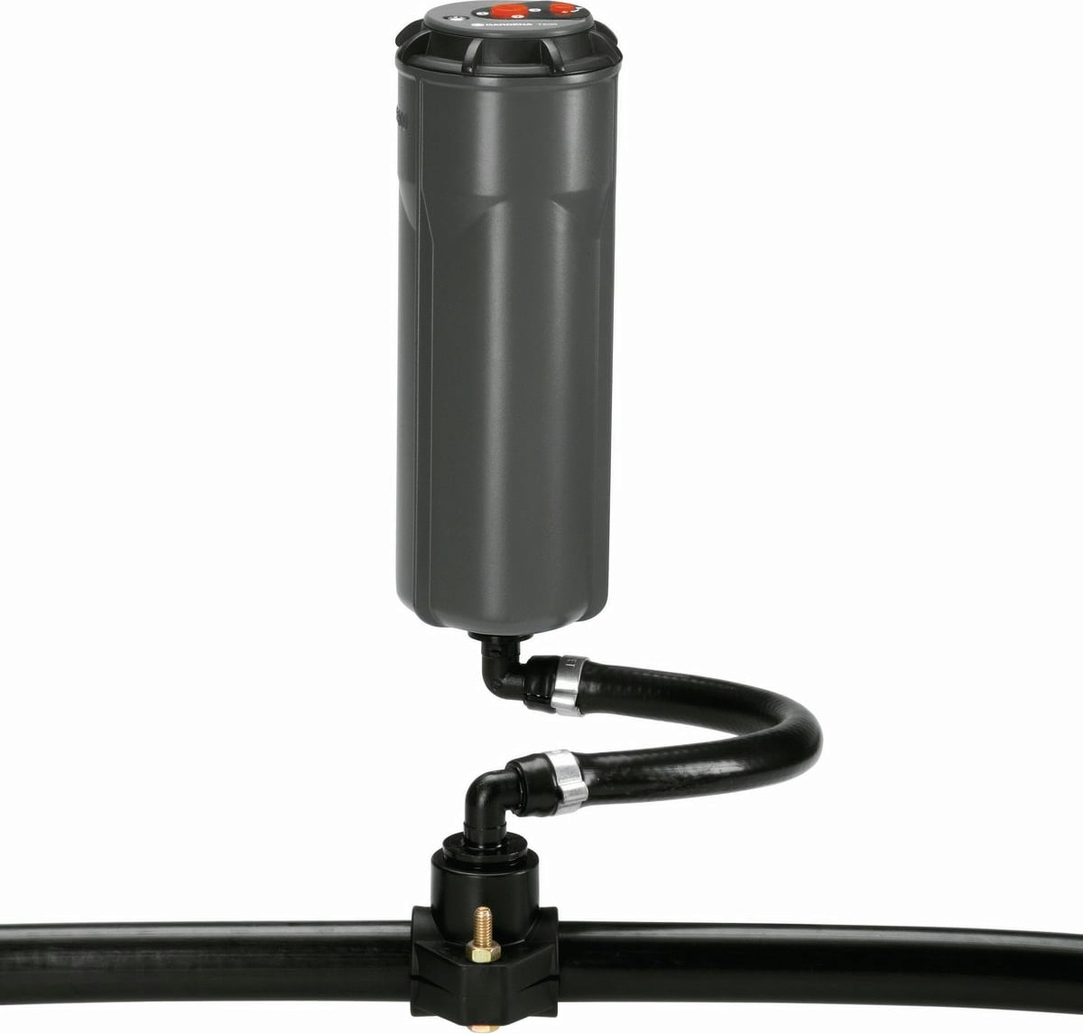 A braçadeira de derivação GARDENA é utilizada para ligar um aspersor ao longo da tubagem, em combinação com as ligações para aspersores GARDENA. Para a ligação flexível dos aspersores escamoteáveis S 30, S 50, S 80, S-ES e S-CS, bem como dos aspersores de turbina escamoteáveis T 100, T 200 e T 360. Uma porca metálica fixa simplifica a montagem.
