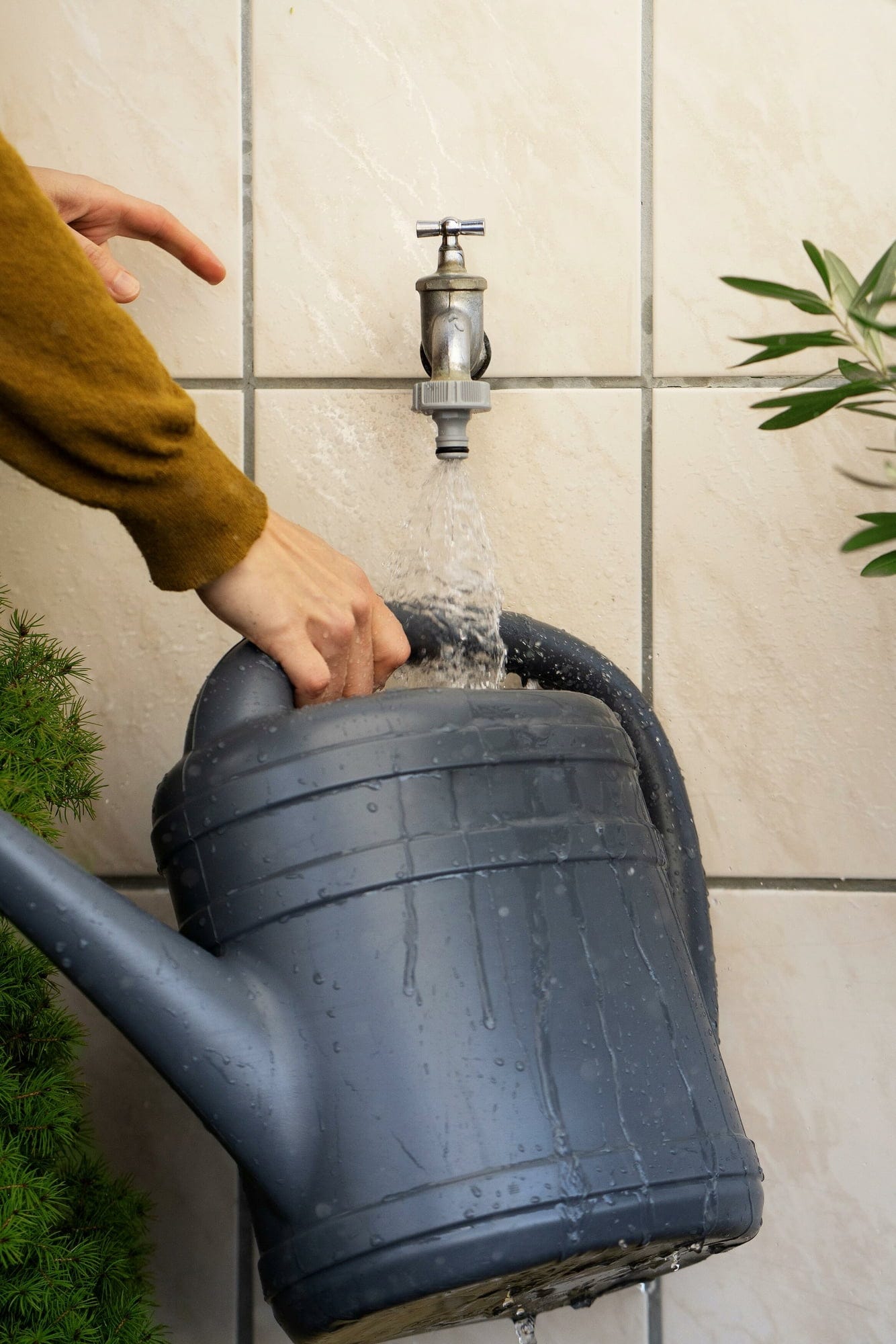 Liga a torneira à mangueira de jardim