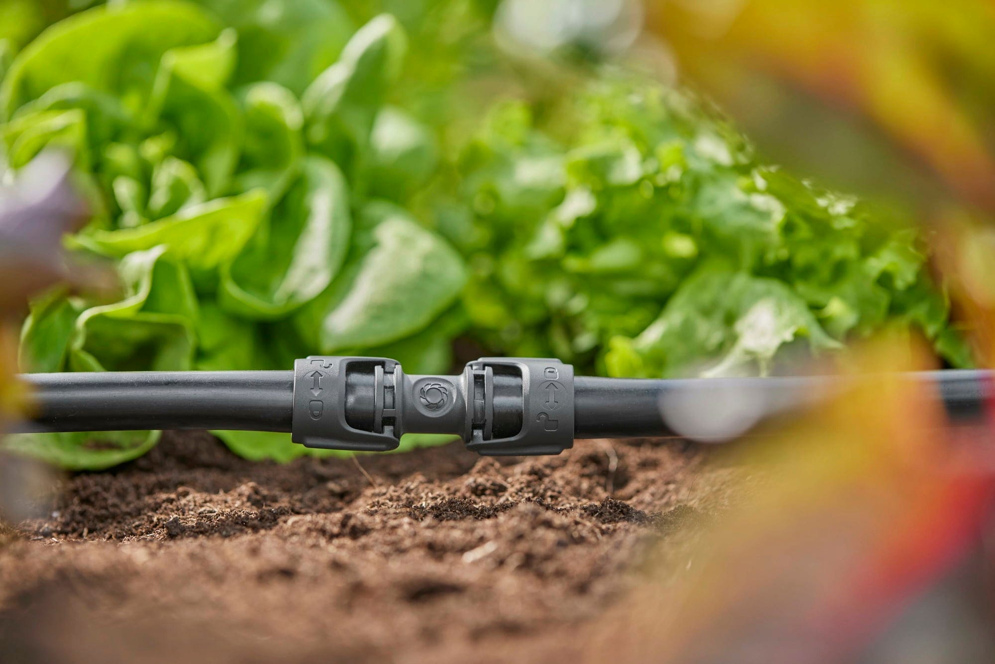 Com o Conector Micro-Drip-System, pode prolongar os seus tubos de instalação e gotejamento Micro Drip de 13 mm de forma rápida e fácil. A instalação é simples e autoexplicativa, graças às marcações. As ligações ficam bem fechadas quando se ouve um clique.