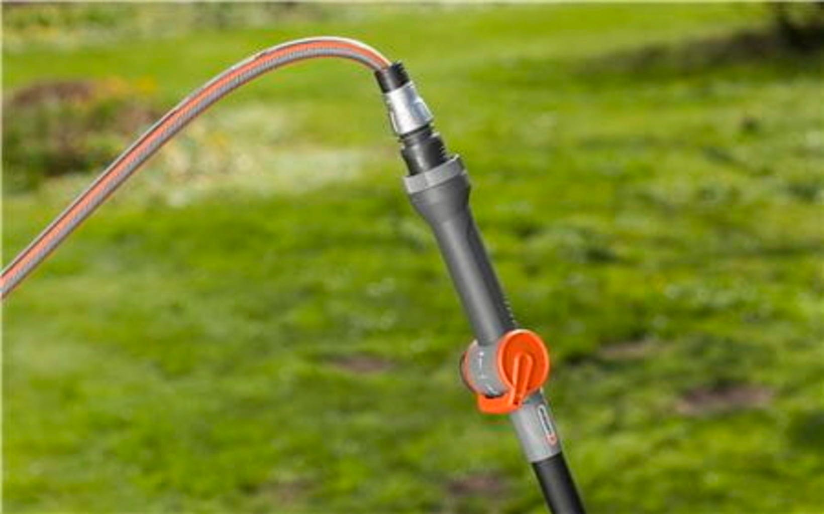 - Troca fácil de acessórios sem ter de ir à torneira - se a agulheta, o chuveiro ou a lança de rega forem soltos, o fluxo de água é interrompido automaticamente e só recomeça quando um novo acessório é ligado à mangueira.