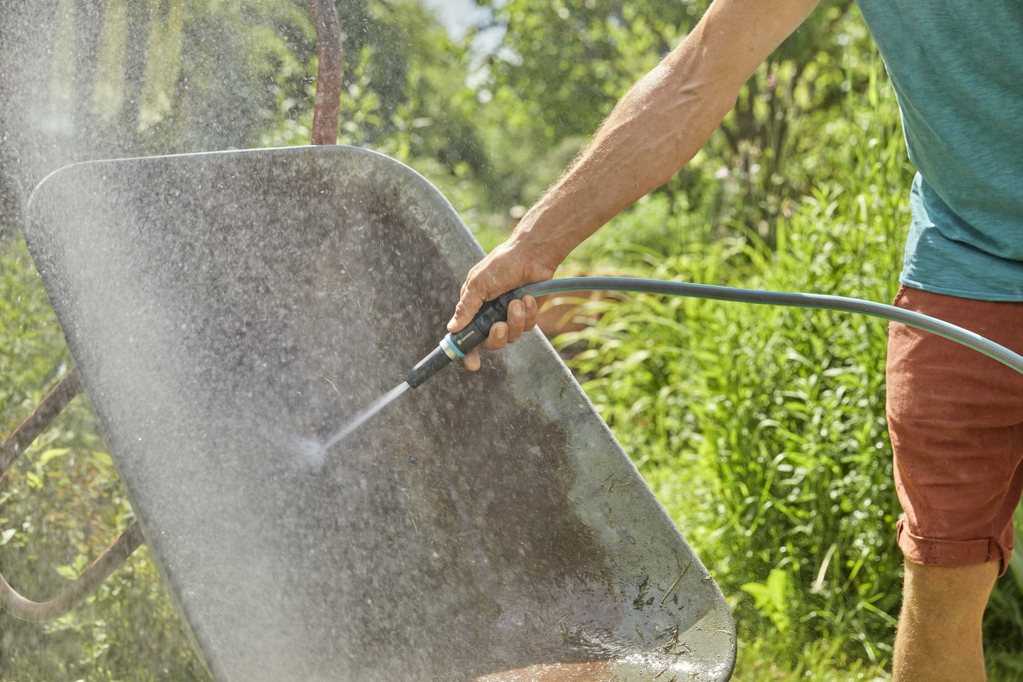 - Jato de pulverização 2 em 1 continuamente ajustável: desde jato concentrado até névoa de pulverização