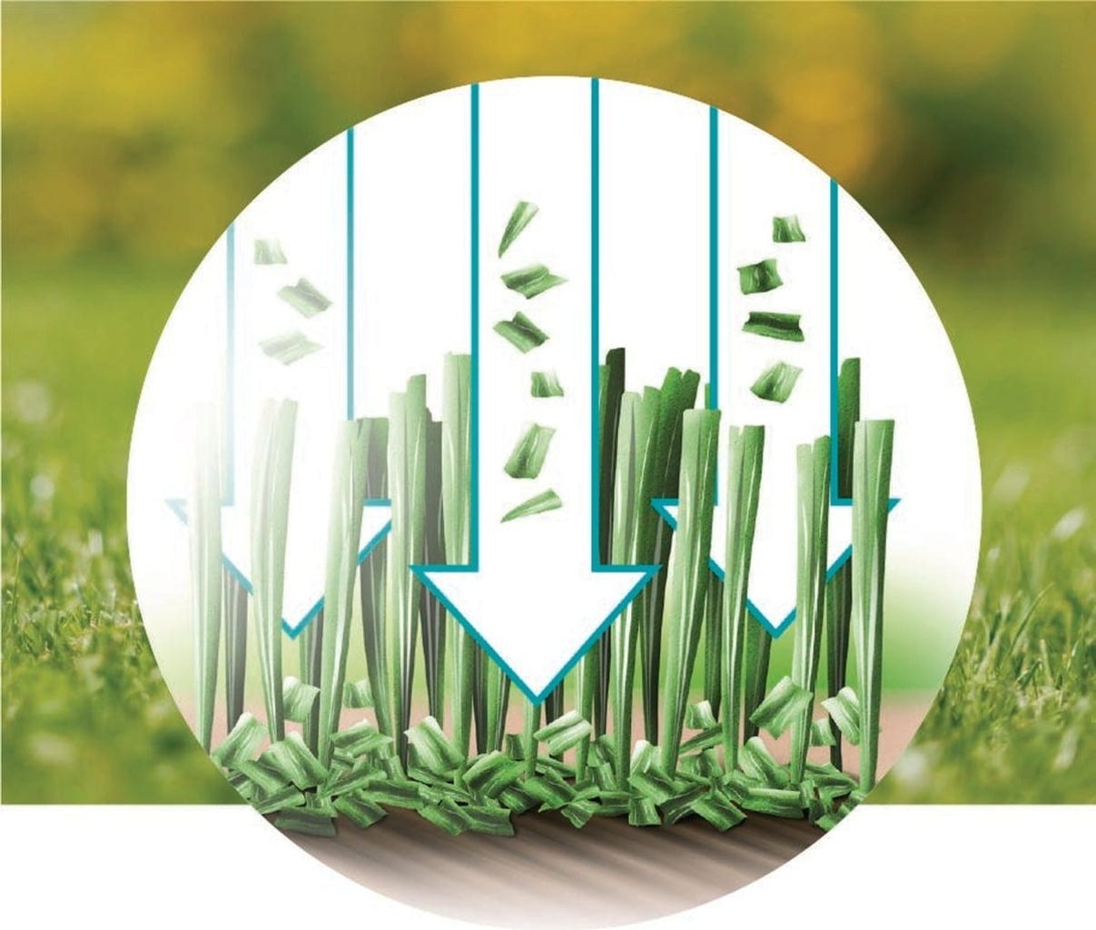 - A lâmina de mulching tritura a relva cortada de forma tão fina que esta pode permanecer na superfície e atuar como um fertilizante natural - eliminando a necessidade de eliminar os resíduos de corte