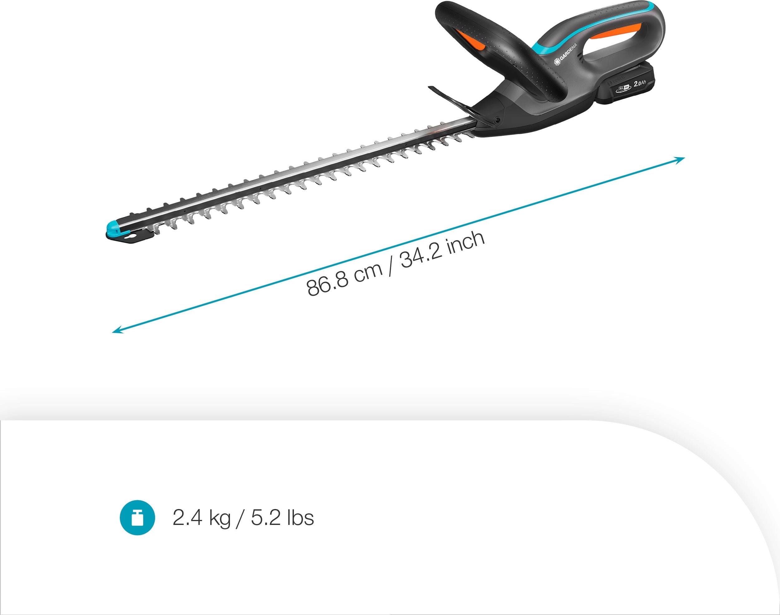 O peso reduzido e a pega ergonómica em arco garantem uma preensão estável em qualquer direção de corte, reduzindo significativamente o esforço nos braços e ombros. A proteção anti-choque integrada preserva as lâminas durante trabalhos próximos do solo ou junto a paredes. Após a utilização, o prático olhal permite guardar a ferramenta de forma simples e economizadora de espaço.