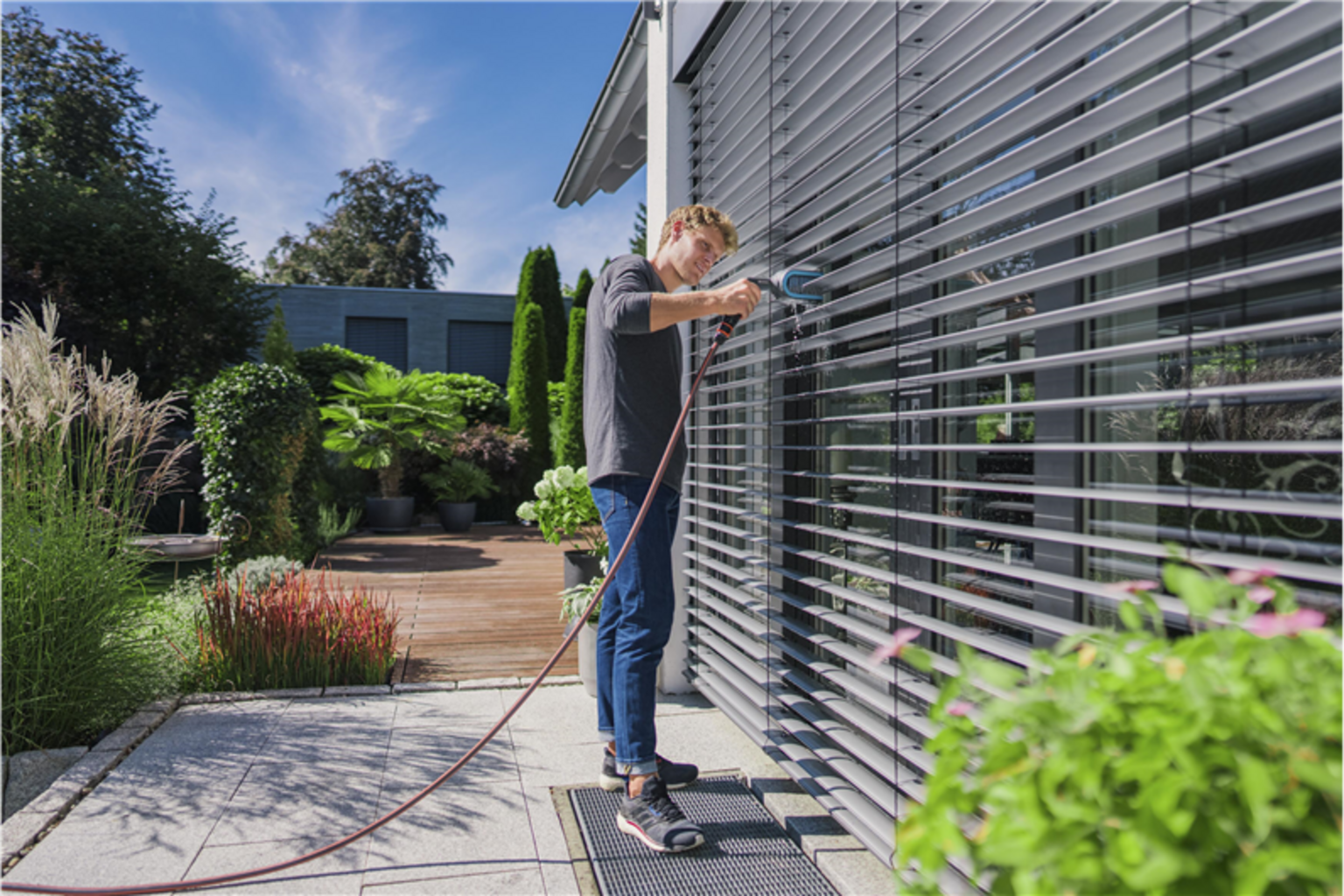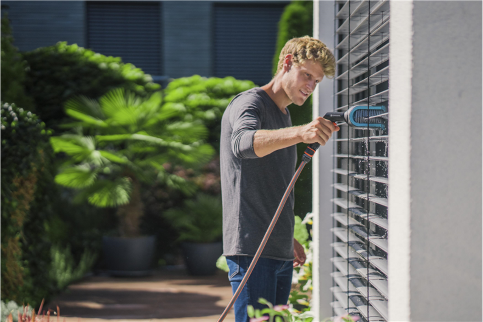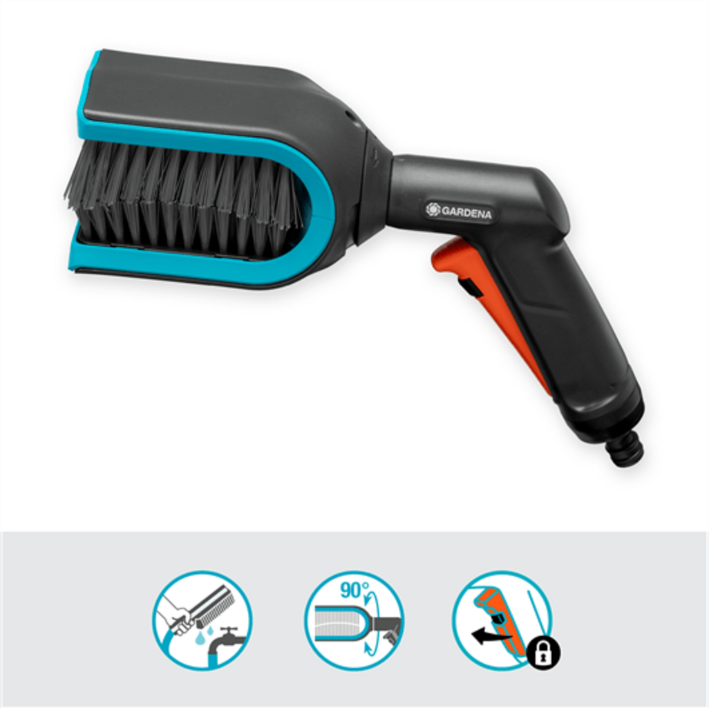 A Escova para Persianas GARDENA Cleansystem foi especialmente desenvolvida para facilitar a limpeza de persianas e minimizar significativamente o esforço de trabalho. A escova é simplesmente ligada à mangueira de jardim para limpar as lamelas das persianas de forma rápida e minuciosa. O fornecimento de água pode ser facilmente interrompido através do botão na escova, o que permite um manuseamento simples.