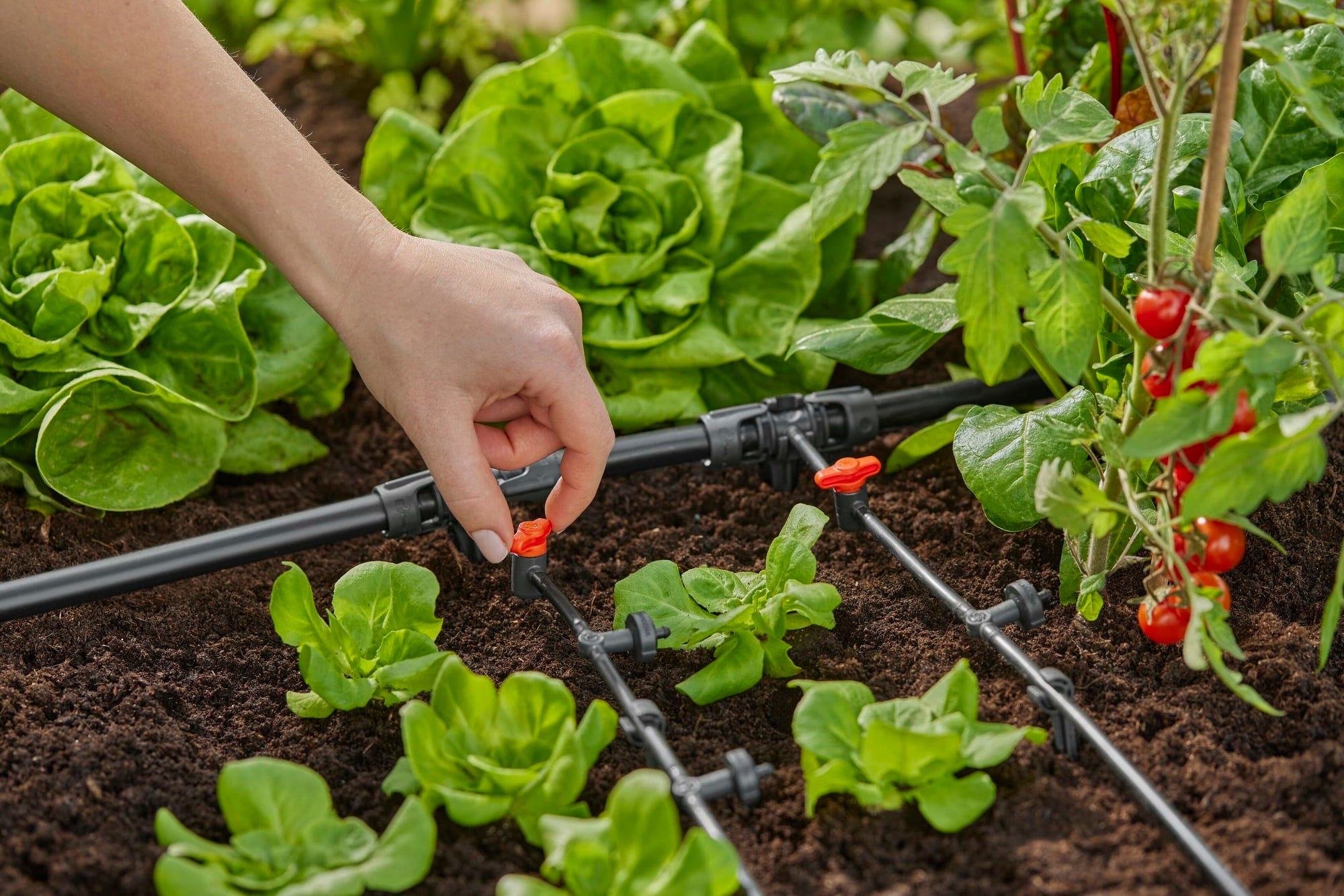 As 10 unidades de gotejadores finais incluídas podem ser facilmente utilizadas na extremidade de um tubo de distribuição de 4,6 mm para a irrigação de plantas individuais em vasos. Em combinação com um tubo de instalação de 13 mm, servem para a irrigação de fileiras de plantas.