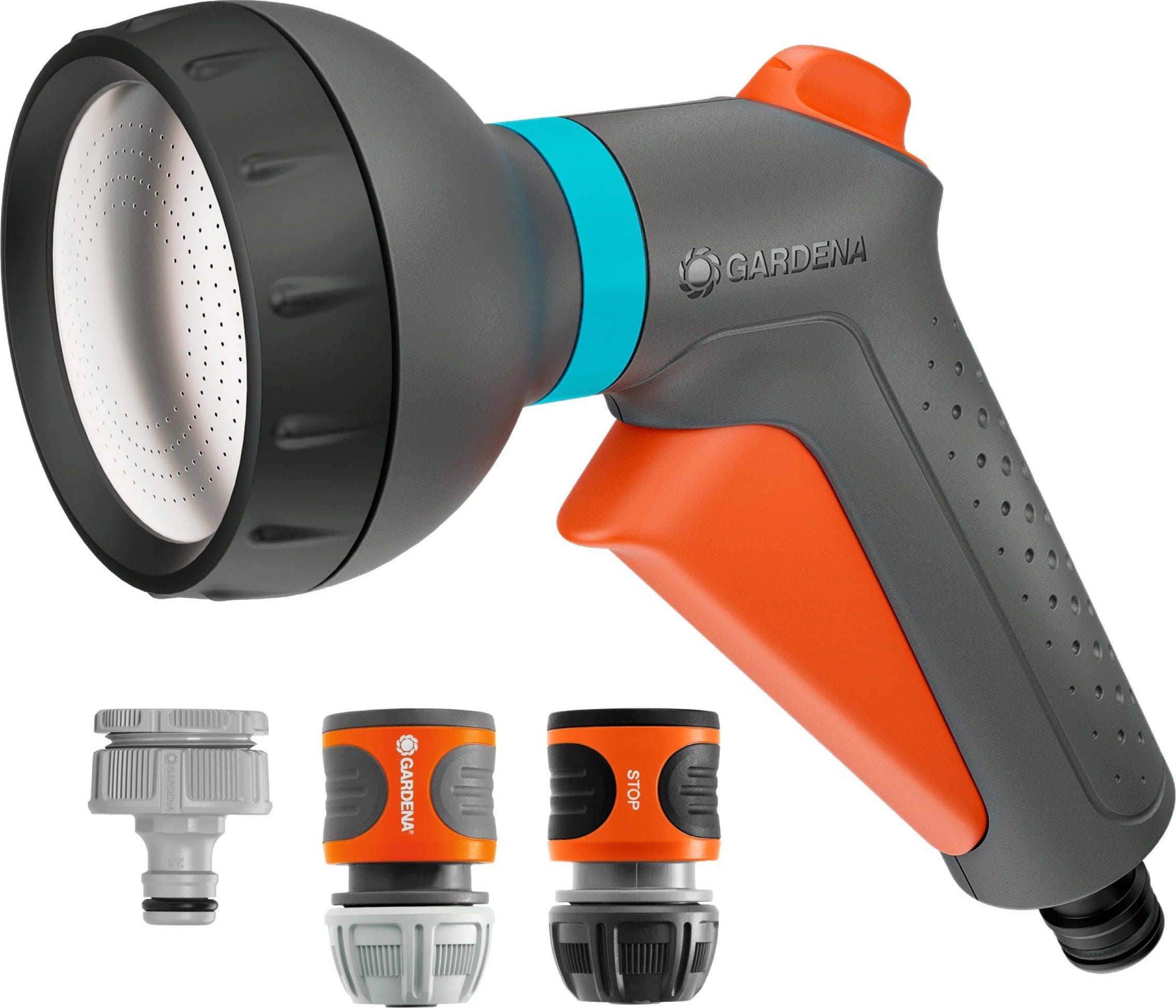 O kit de lança de rega da GARDENA oferece tudo o necessário para uma ligação rápida, desde o adaptador de torneira até à lança. O jato suave foi especialmente concebido para regar as plantas de forma delicada e uniforme, sem deslocar o solo mais sensível. Graças à estrutura ergonómica e ao prático bloqueio para uso contínuo, a mão mantém-se relaxada mesmo durante sessões de rega prolongadas.