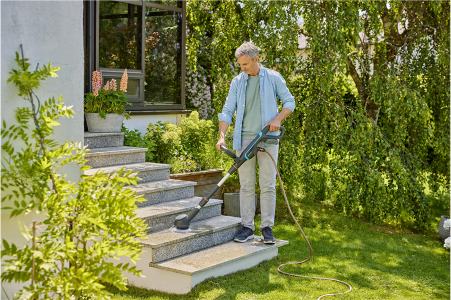 - Perfil de escova otimizado: O AquaBrush Compact está equipado com um perfil de escova otimizado que permite uma limpeza suave mas eficaz. É particularmente adequado para superfícies sensíveis, como decks de madeira e terraços.