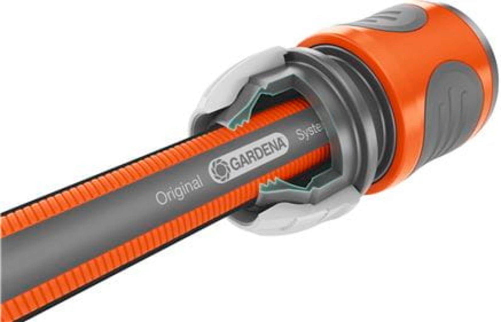 A mangueira Comfort Flex da GARDENA com perfil Power Grip garante uma ligação ideal entre o conector e a mangueira, uma vez que estes se encaixam como engrenagens. O material robusto é resistente à pressão e mantém a forma, sem perder a flexibilidade.