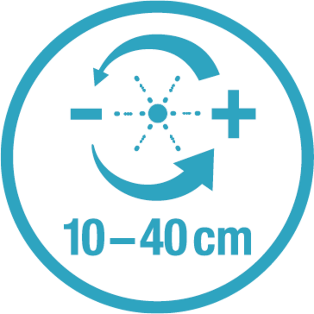 - Raio ajustável entre 10 e 40 cm