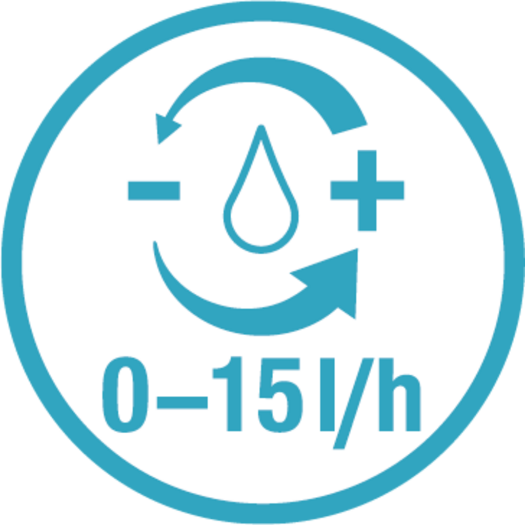 • Débito de água variável de 0 a 15 litros por hora