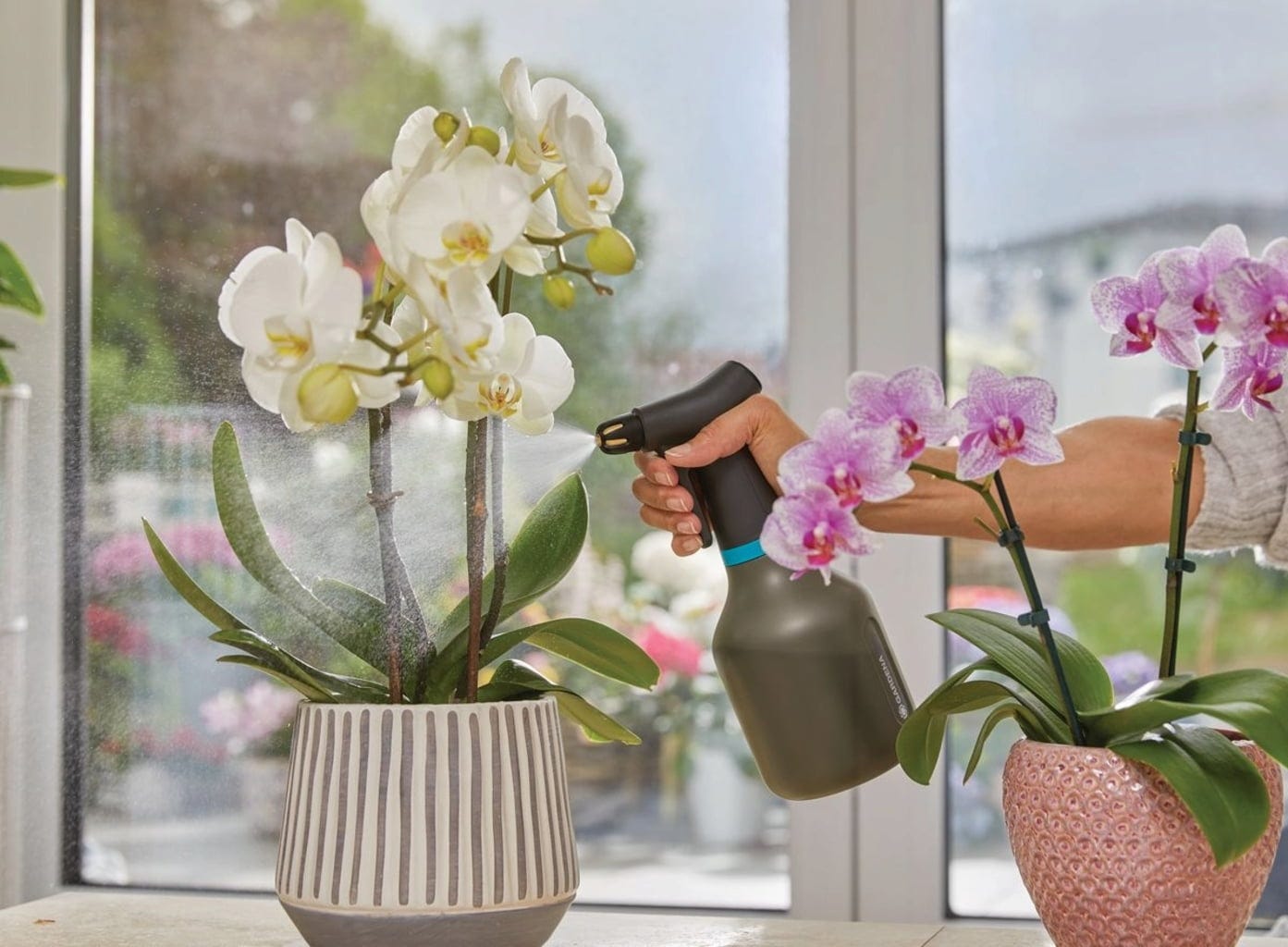 O pulverizador de pressão com uma capacidade de 0,75 litros é ideal para a pulverização suave de flores em casa, no terraço ou no jardim. Com a função de 360°, a aplicação sob as folhas é perfeita - sem aspiração de ar, independentemente da posição. Além disso, o pulverizador está equipado com um bocal de latão maciço de alta qualidade, robusto e infinitamente ajustável, e o material translúcido garante uma leitura fácil do nível de enchimento. Simplesmente genial - funcionalidade bem pensada e design excelente.