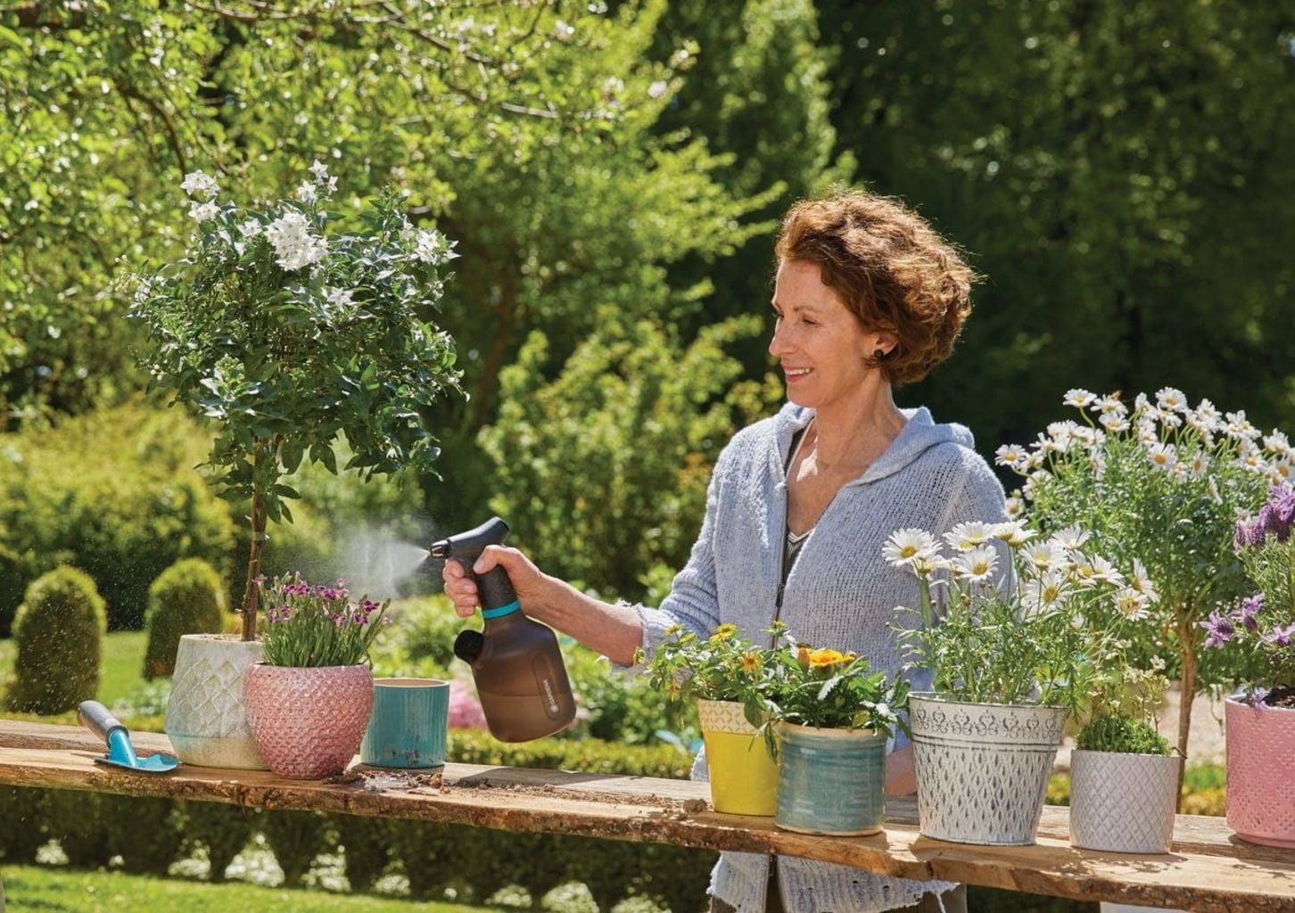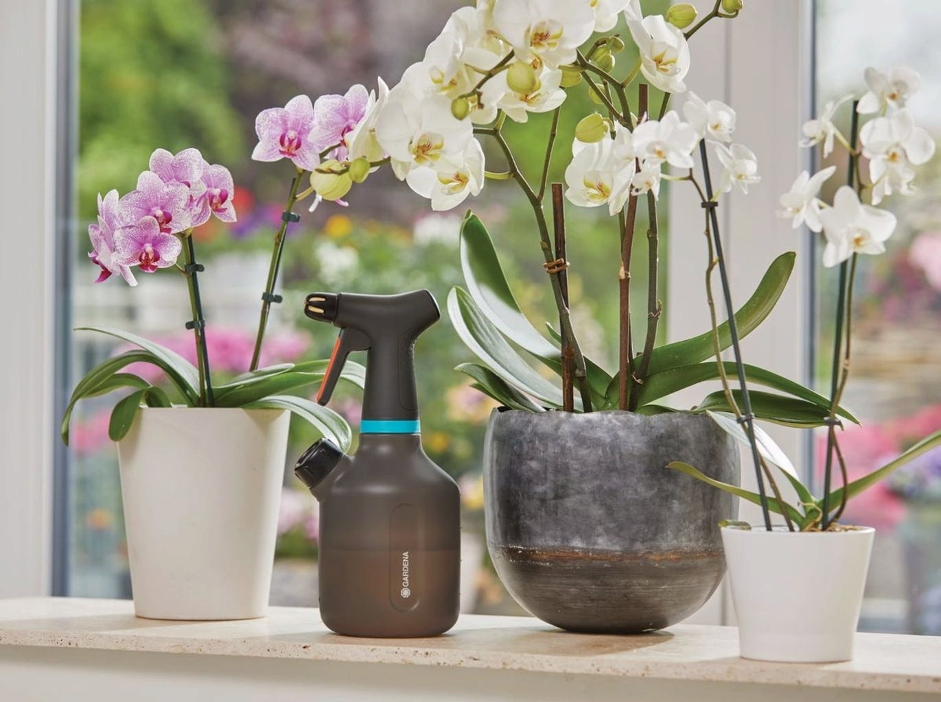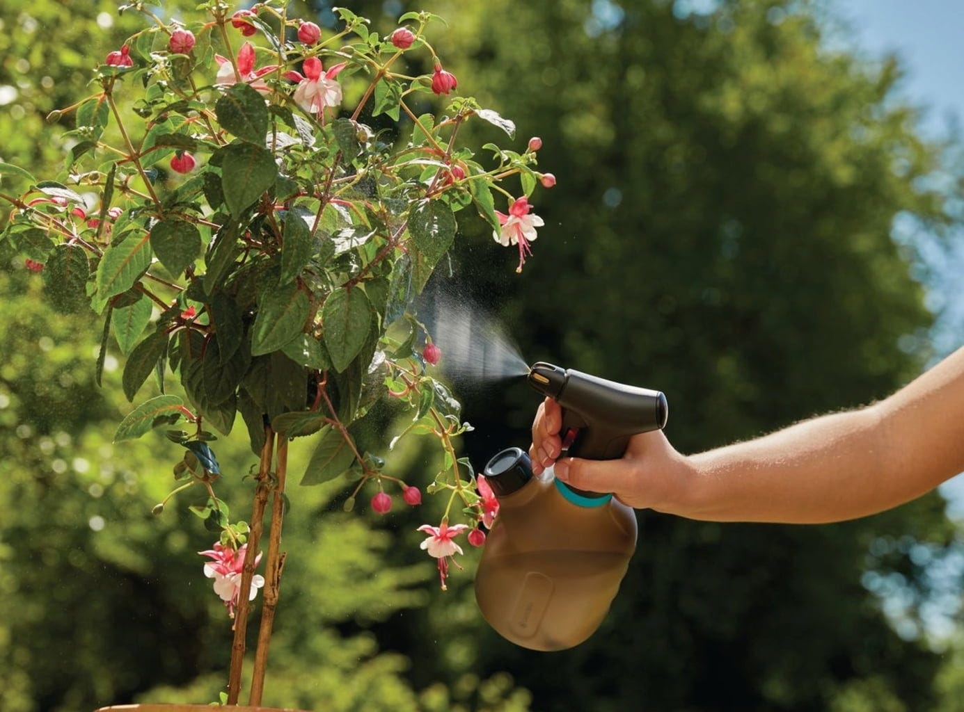 Ideal para a pulverização suave de flores em casa, no terraço ou no jardim. Este pulverizador de pressão com capacidade de 1 litro tem tudo o que precisa: é feito de plástico translúcido. Uma segunda abertura permite o enchimento, a mistura e o esvaziamento fáceis. A tampa serve como tampa doseadora para fertilizantes ou produtos fitofarmacêuticos. Uma mangueira de silicone especial com peso evita a aspiração de ar, permitindo que o pulverizador funcione mesmo em posição inclinada. Simplesmente genial.