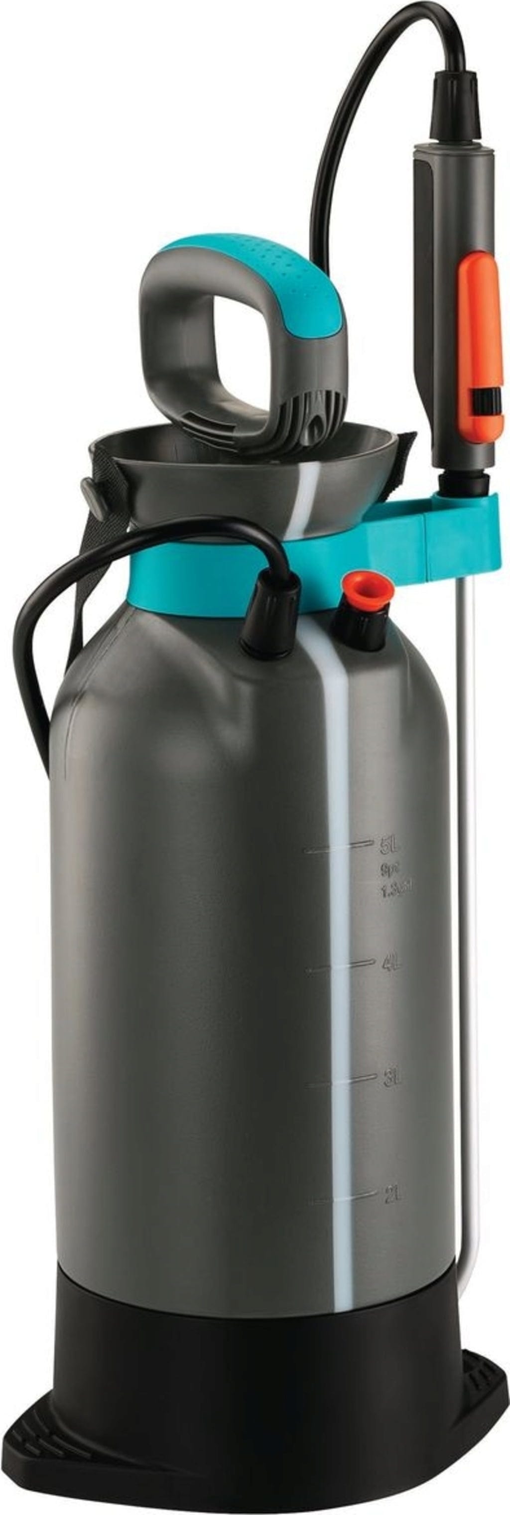 Nunca foi tão fácil e confortável a aplicação direcionada e precisa de produtos de proteção ou fortalecimento de plantas no jardim. O pulverizador de pressão "Comfort" com capacidade de 5 litros é feito de plástico com uma larga faixa de visualização para controlo do nível de enchimento, um bocal de pulverização ajustável de alta qualidade, uma grande superfície de apoio para bombagem fácil, estabilidade segura e proteção do bocal. Graças a uma pega em D ergonómica e larga, o pulverizador de pressão é fácil de manusear. O gatilho de impulso com bloqueio contínuo também é prático. Além disso, pode ser inserido um filtro para o enchimento de infusões caseiras. Não podia ser melhor.