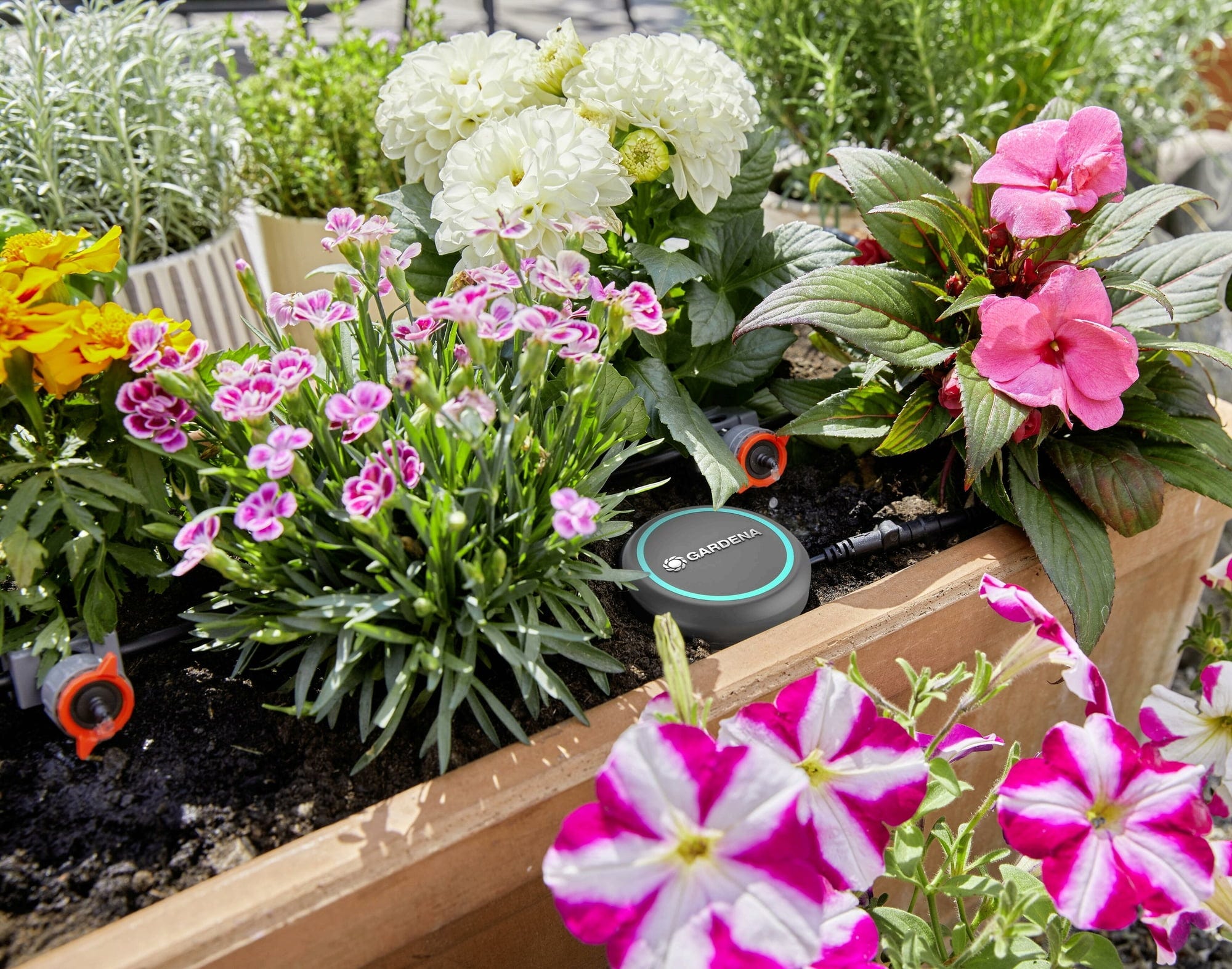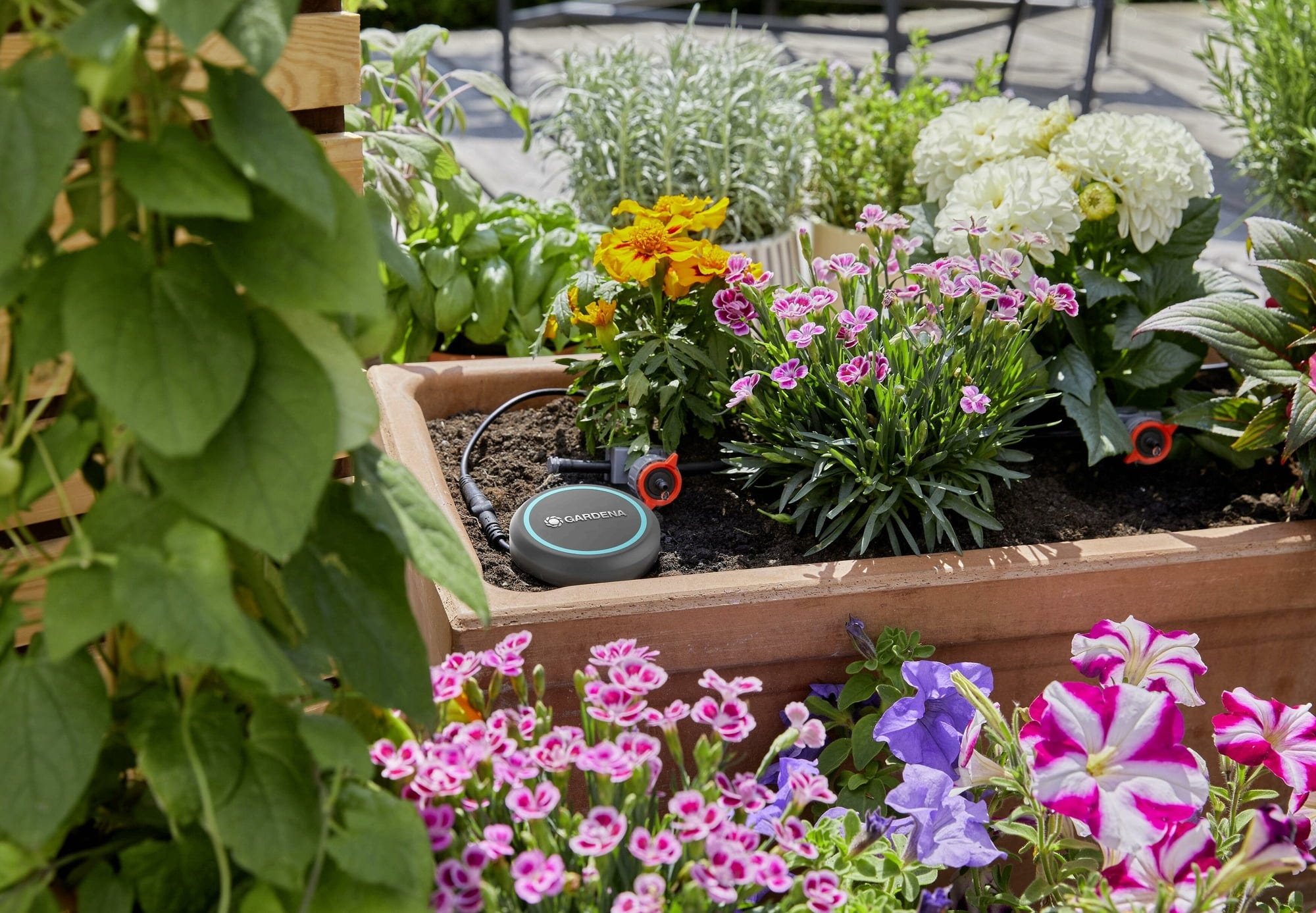 O sensor de humidade do solo tem tudo sob controlo e garante uma utilização inteligente da água. Ajuda-o a poupar água e a fornecer às plantas a quantidade exata de água para um crescimento melhor e mais saudável, uma vez que o sensor mede a humidade do solo. Se o solo tiver um nível de humidade suficiente, o ciclo de rega programado é automaticamente suspenso ou interrompido.
