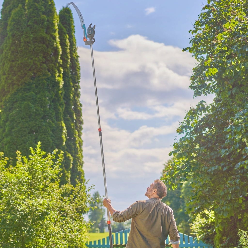 O acessório de serra GARDENA StarCut Pro L é uma solução inovadora para serrar em várias alturas, ideal para o corte de ramos e galhos.