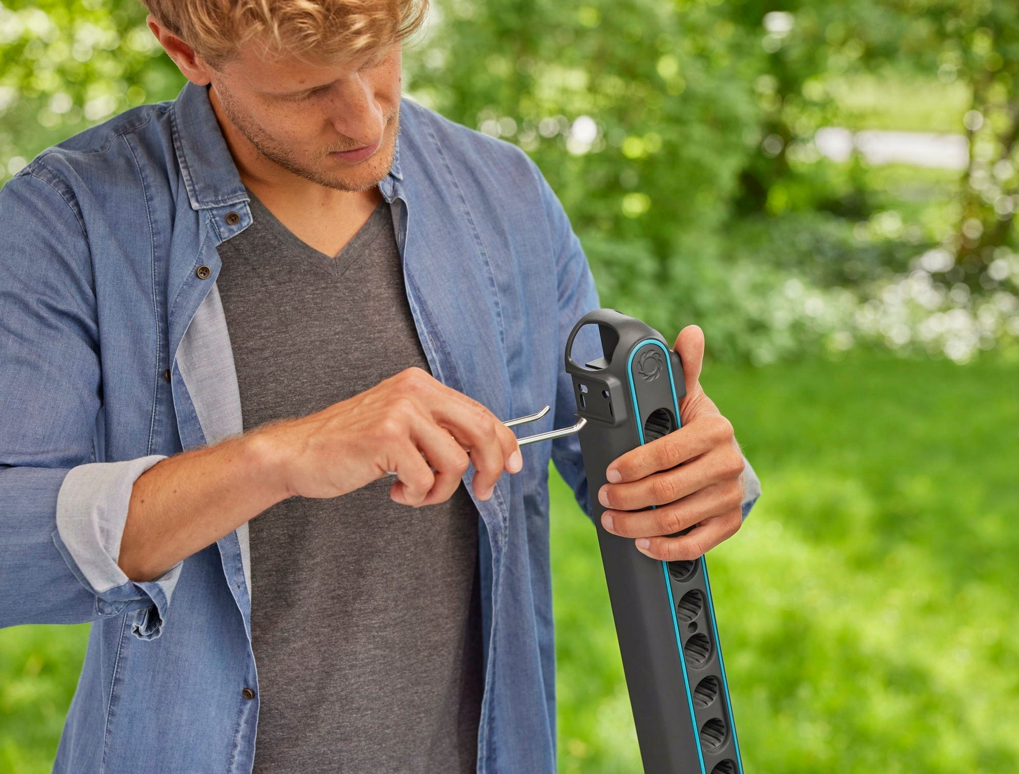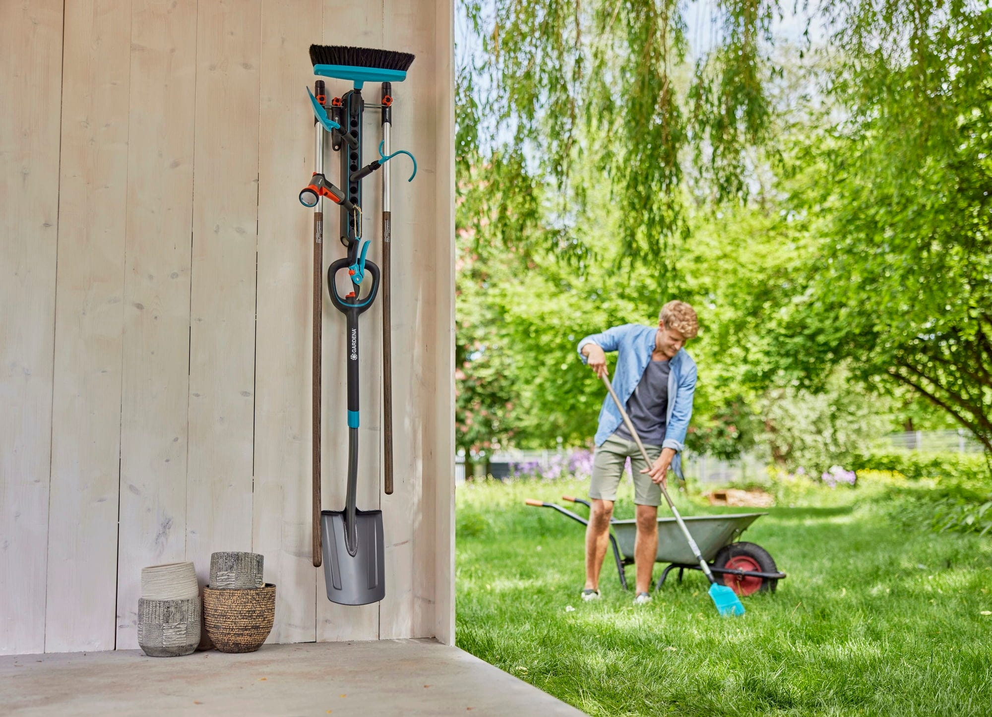 O suporte para ferramentas combisystem Flex é a solução de armazenamento ideal para as suas ferramentas de jardim e cabos. O suporte pode ser montado tanto vertical como horizontalmente.