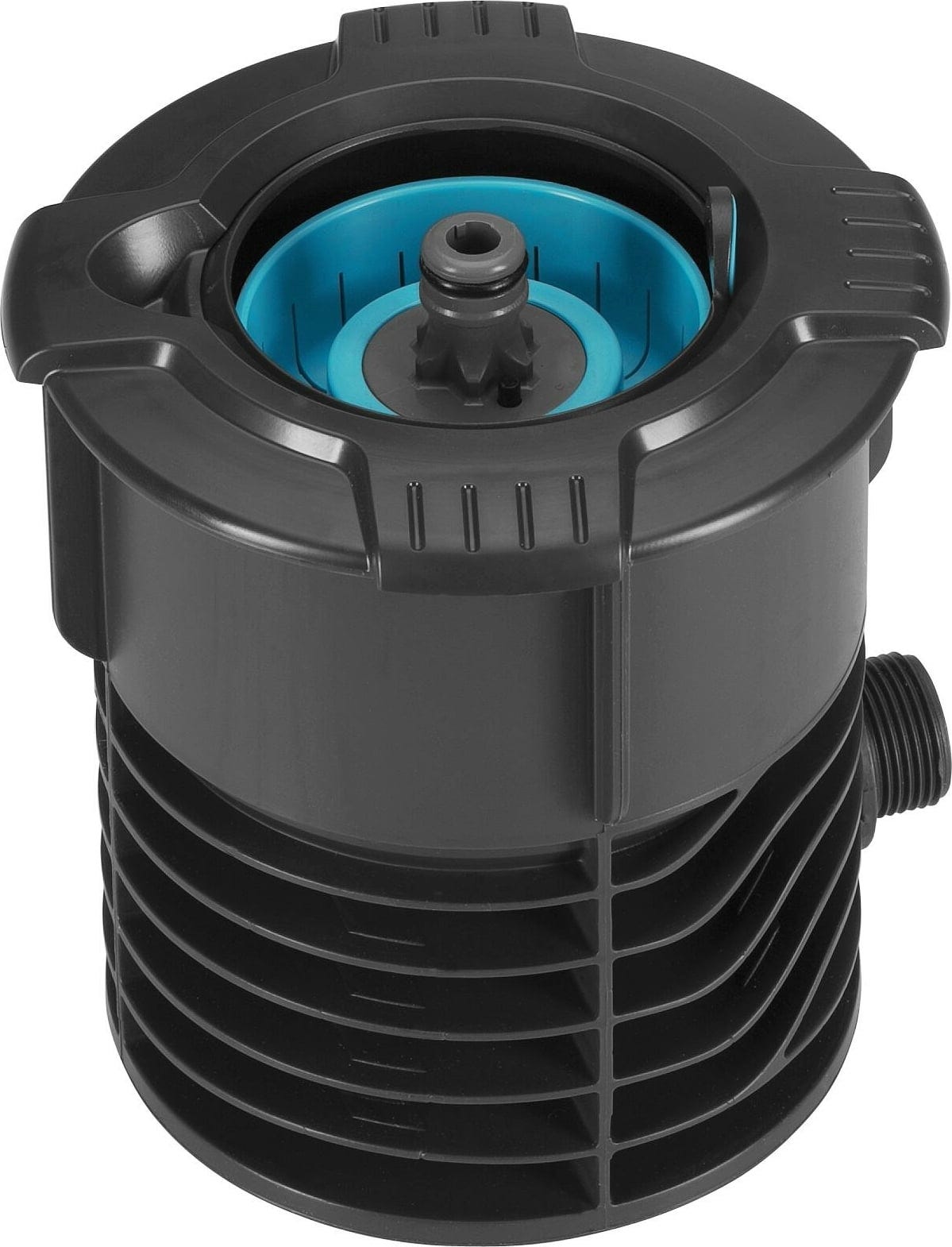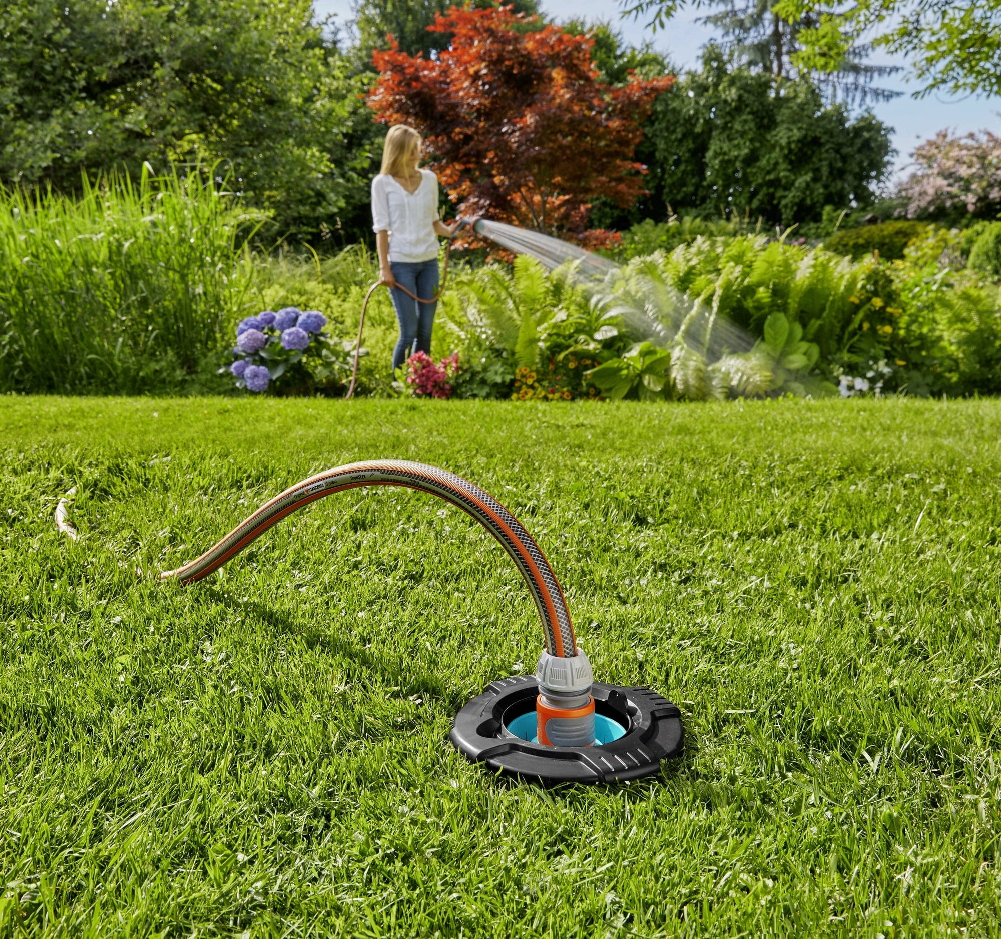 • Manuseamento simples - abra a tampa esférica e ligue a mangueira, o aspersor ou a torneira à ligação original do sistema GARDENA