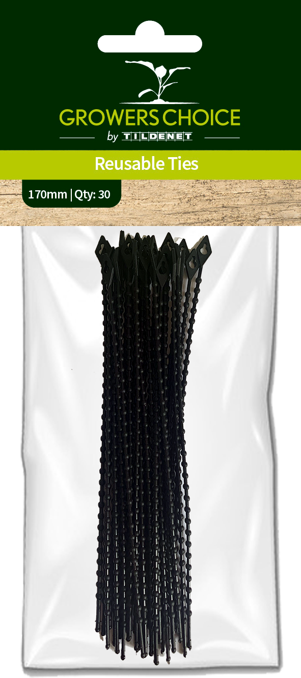 Die Growers Choice Reusable Ties sind leichte Kunststoffbinder, die sich ideal zum Befestigen von Pflanzen eignen. Sie sind wiederverwendbar und nahezu unsichtbar, sobald sie angebracht sind, sodass sie Pflanzen sicheren Halt geben, ohne das Gesamtbild deines Gartens zu stören. Perfekt für eine saubere und ordentliche Pflanzenbefestigung.