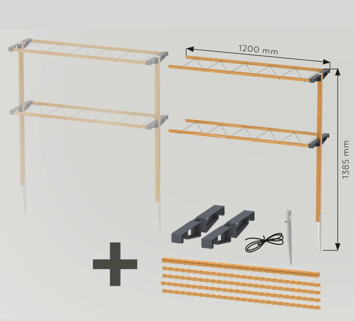 Com esta extensão para o BERRY BUDDY é possível transformar o sonho de um jardim de bagas próprio em realidade e oferecer a inúmeros arbustos de bagas um suporte de trepadeira estável.