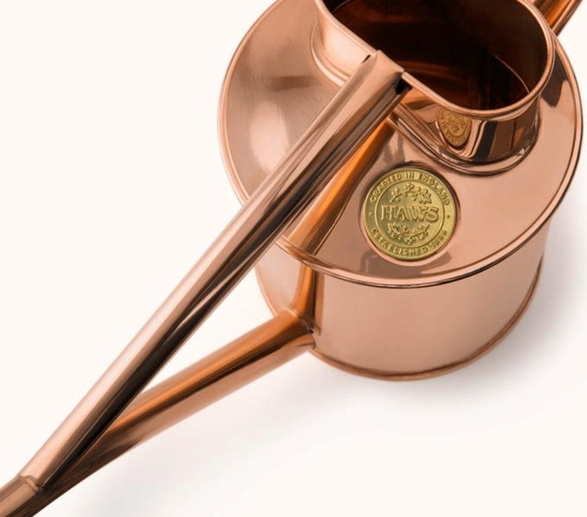 Este regador de cobre de alta qualidade é tão elegante quanto versátil. É ideal para regar plantas de interior, plantas em vaso e sementeiras, bem como o acessório perfeito para estufas. Com a sua aparência encantadora, é também um elemento decorativo ideal. Regar nunca foi tão elegante.