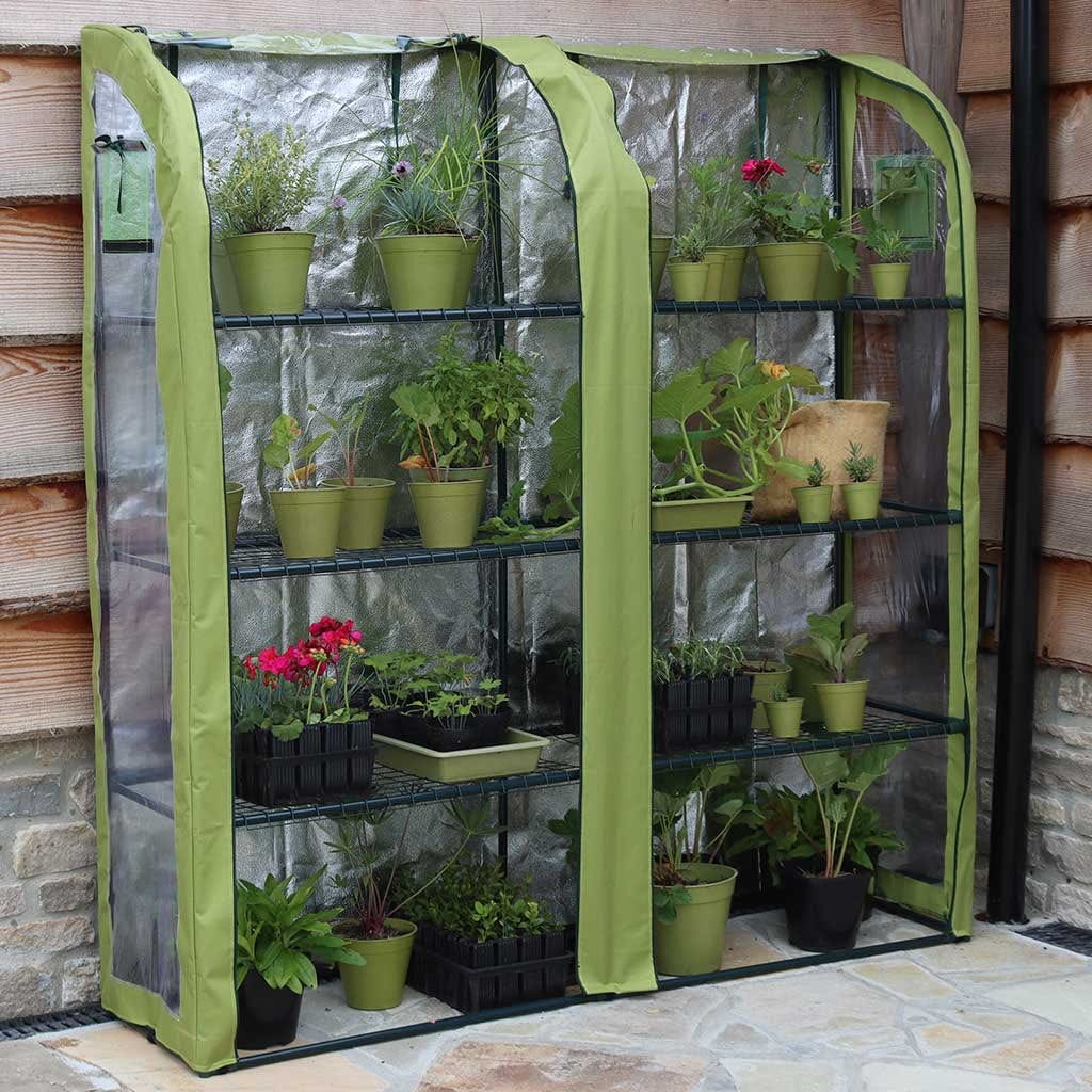 Esta estufa é um verdadeiro prodígio de espaço e garante a felicidade do jardineiro desde o início da primavera até ao final do outono. Oferece às tuas plantas as condições de crescimento ideais e, graças à parte traseira refletora de luz, garante que estas cresçam até 50% mais depressa. Assim, nada impede um início precoce da próxima época de jardinagem.