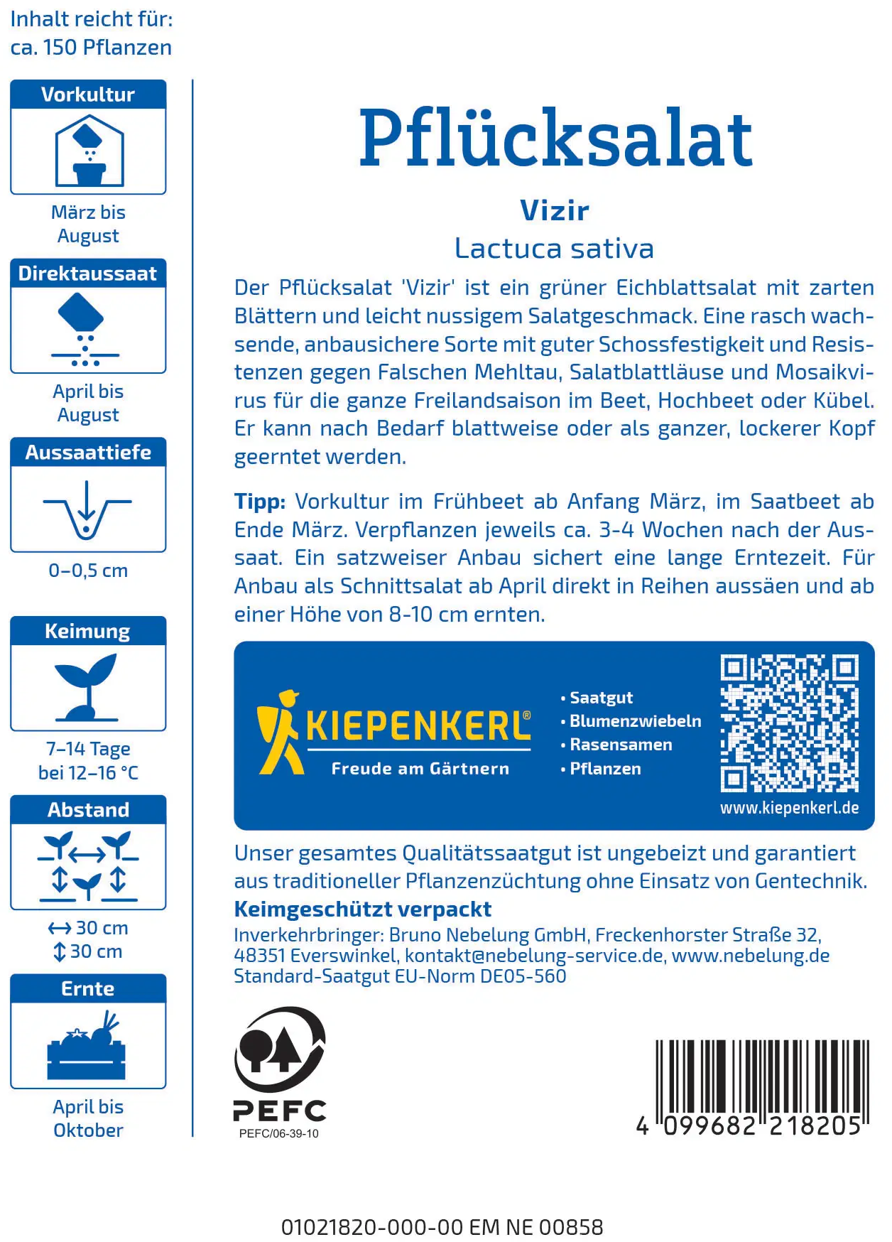 A alface de colher Vizir é uma alface tipo folha de carvalho de crescimento rápido e tenra, com um aroma ligeiramente amendoado. Graças à sua excelente resistência ao espigamento e a várias doenças, é perfeita para toda a época de jardinagem. A colheita é flexível – folha a folha ou como uma cabeça solta. Uma alface fresca e versátil para qualquer cozinha.