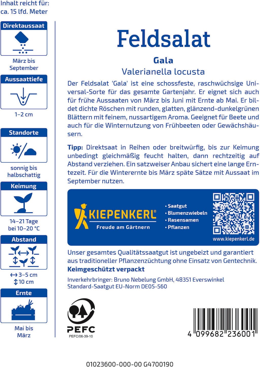 Esta variedade de crescimento rápido e resistente ao espigamento é adequada para toda a temporada ao ar livre, bem como para o uso no inverno em estufas e canteiros protegidos. As suas rosetas densas consistem em folhas verdes escuras e lisas, com um agradável sabor a noz.