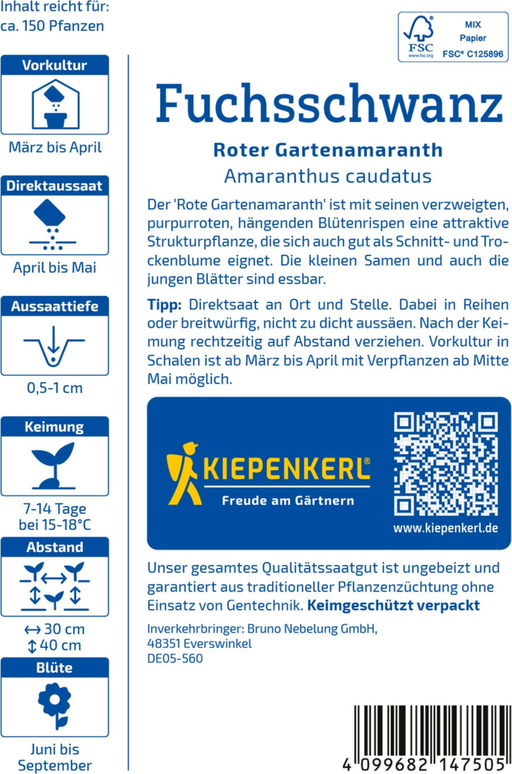 | O conteúdo é suficiente para aprox.: | 150 plantas |