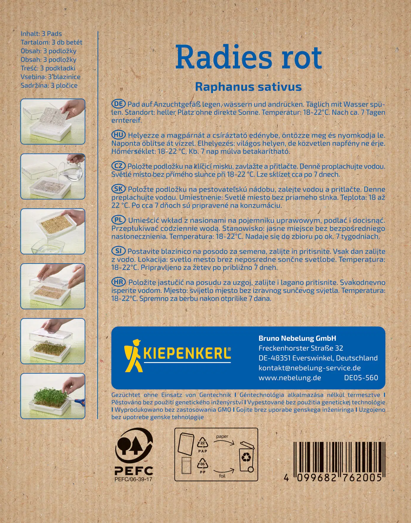Kiepenkerl BIO Microgreen Garden Pads Rabanete vermelho