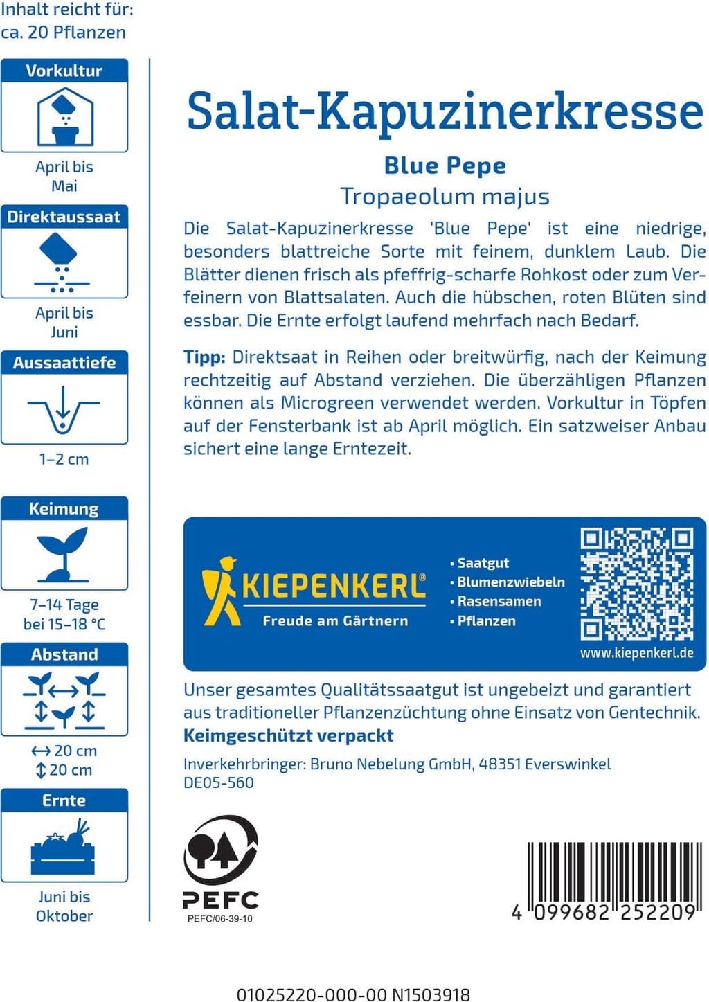 Kiepenkerl Capuchinha de Salada Blue Pepe