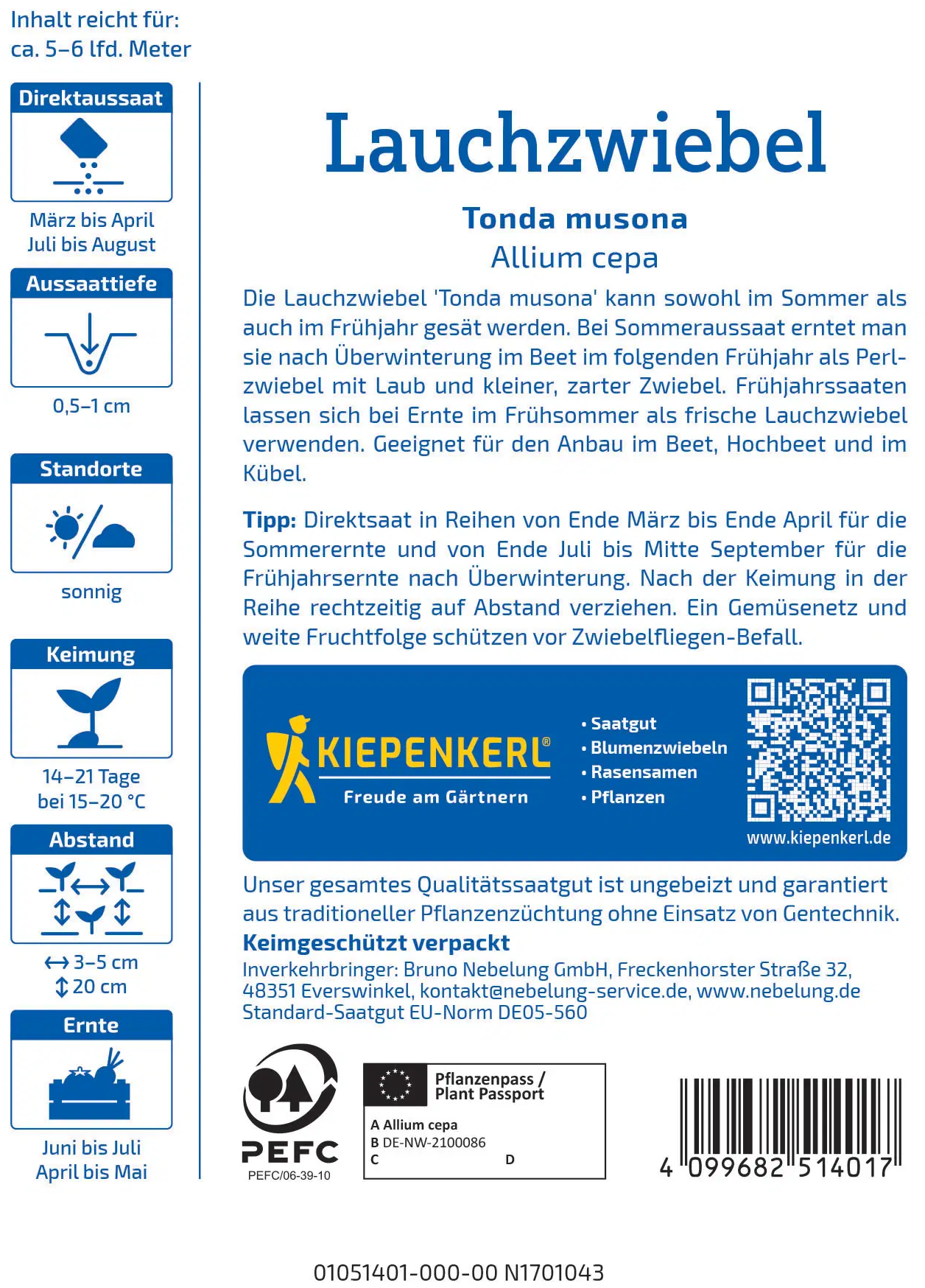 A cebolinha 'Tonda musona' é particularmente versátil: as sementeiras de primavera fornecem cebolas tenras já no início do verão, enquanto as sementeiras de verão podem ser colhidas como cebolinhas de conserva na primavera seguinte, após a hibernação. É ideal para canteiros, canteiros elevados ou vasos.