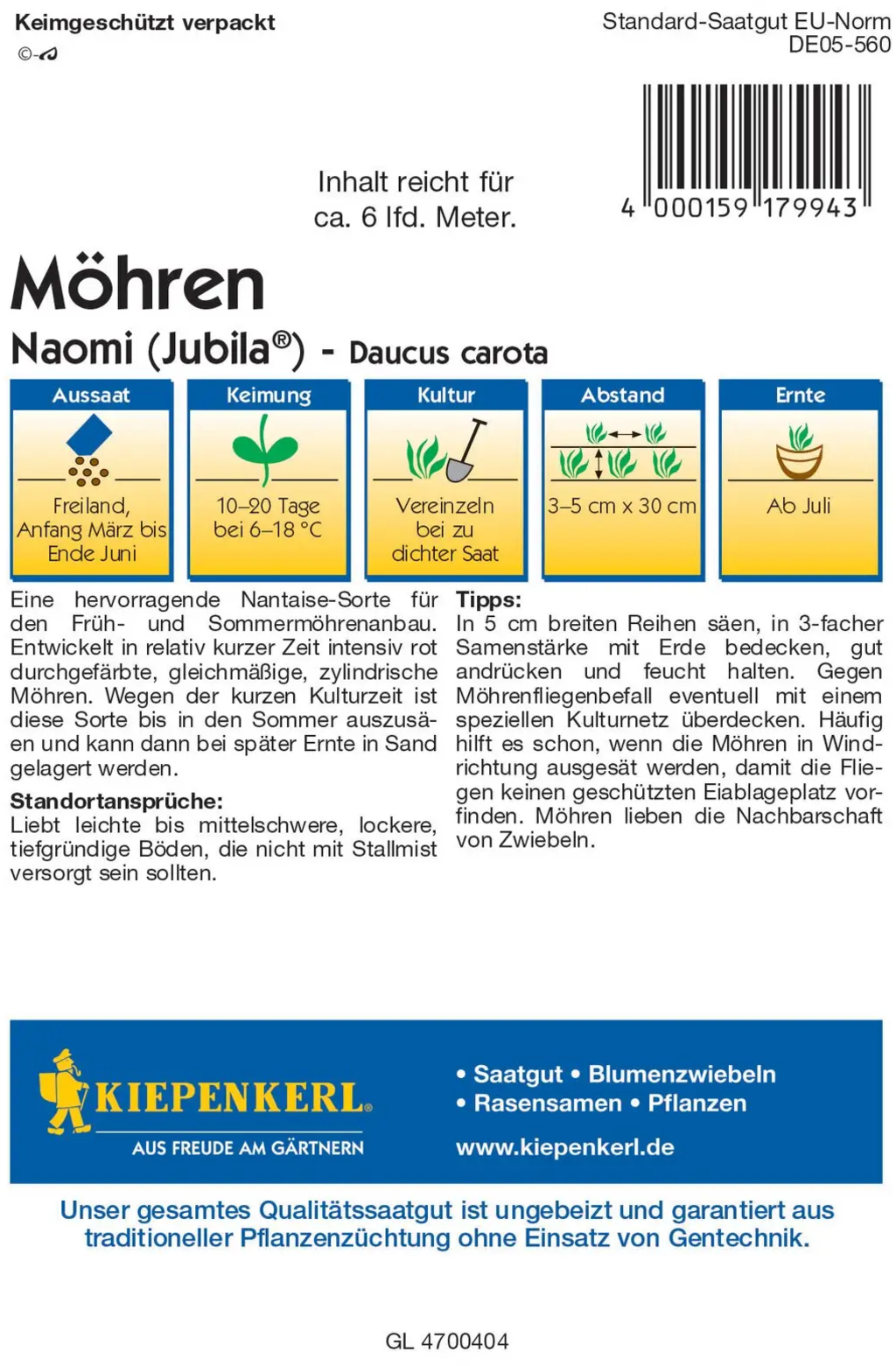 Esta variedade de jardim robusta e de crescimento rápido é adequada para o cultivo escalonado da primavera ao outono, permitindo uma colheita prolongada. Produz cenouras com até 18 cm de comprimento.