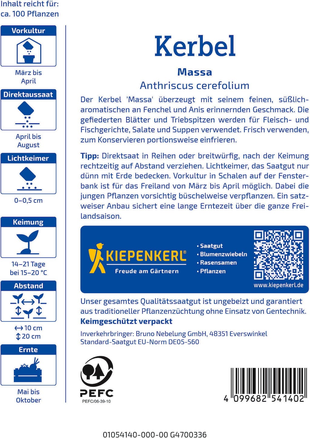 O cerefólio é um condimento popular na cozinha. Refina sopas, pratos de carne ou saladas, conferindo-lhes um toque muito especial com o seu sabor doce e aromático. Para armazenamento, também pode ser maravilhosamente congelado em porções.