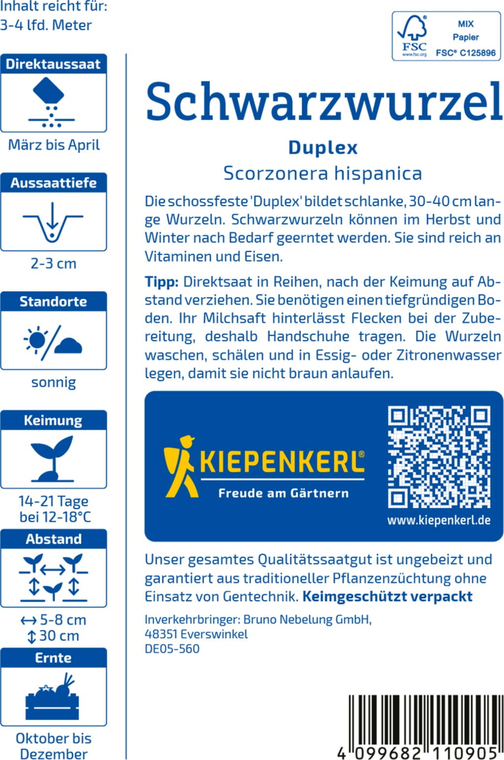 Esta variedade resistente ao espigamento é colhida no outono e no inverno, conforme necessário. Forma raízes longas e delgadas de até 40 cm.