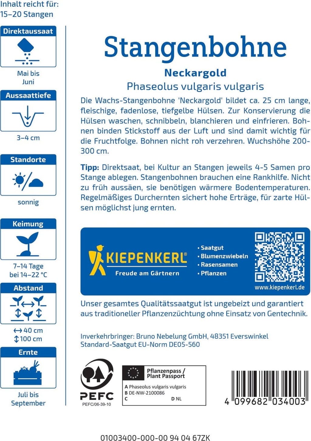 Kiepenkerl Feijão-de-trepadeira Neckargold