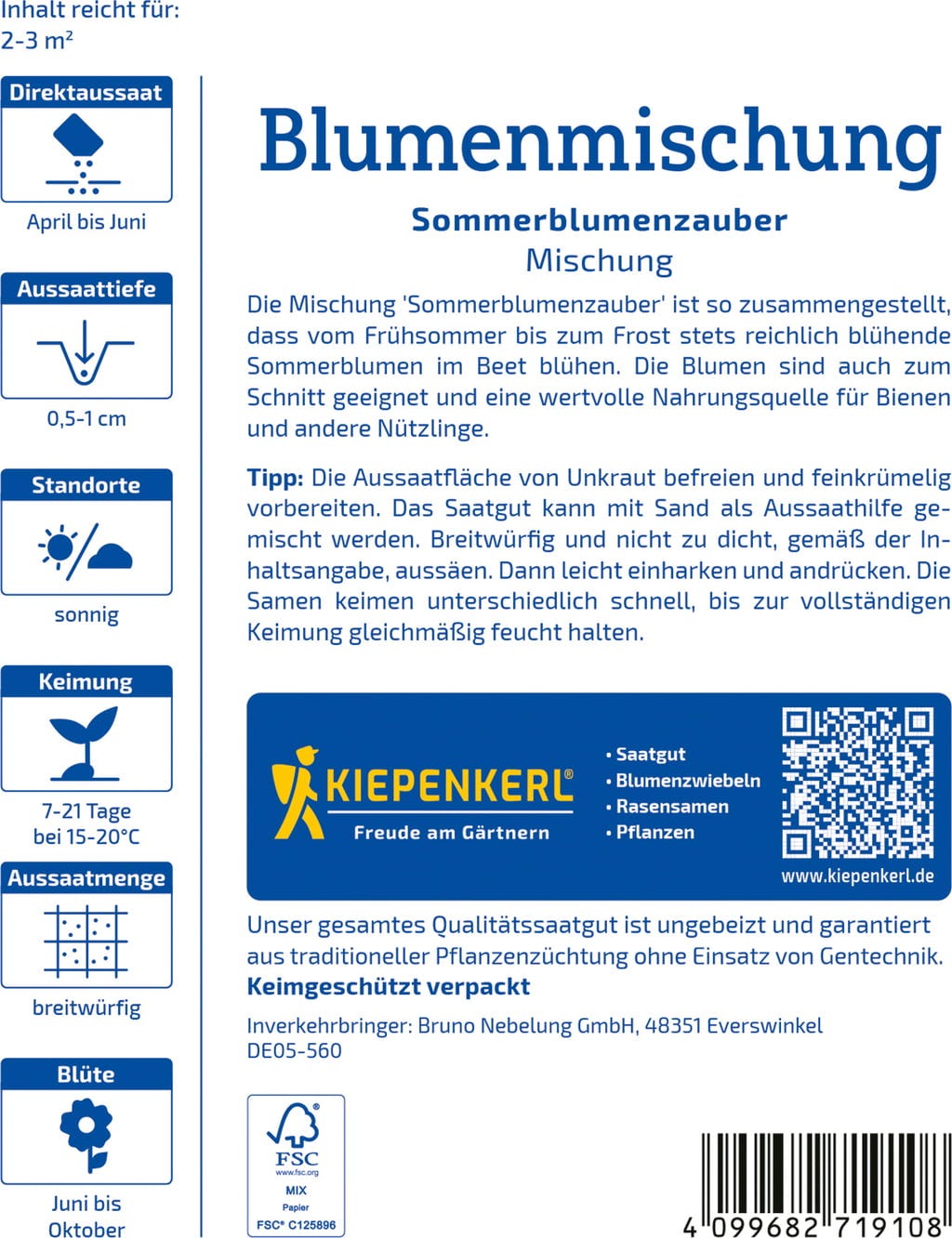 A mistura Magia de Flores de Verão proporciona um mar de flores que enriquece o jardim desde o início do verão até ao final do outono. Estas flores versáteis são ideais para canteiros e ramos, criando acentos coloridos. Além da sua beleza visual, as plantas atraem inúmeros insetos úteis e promovem a biodiversidade.