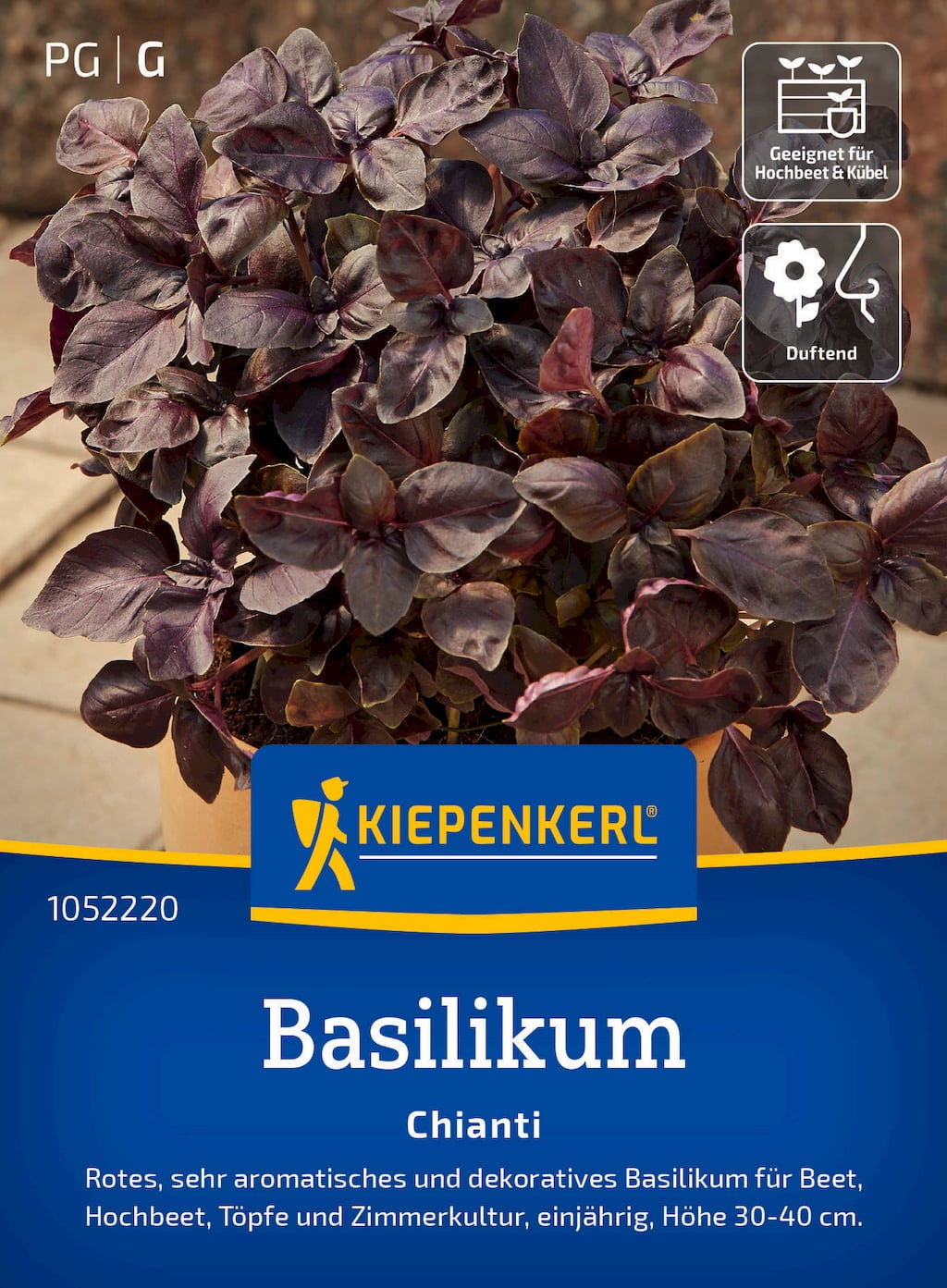 Com as suas folhas vermelho-escuras e o seu aroma intenso, este manjericão é tanto um deleite para os olhos como para o paladar. As flores de verão cor-de-rosa reforçam ainda mais o efeito decorativo. As folhas podem ser utilizadas frescas, congeladas em porções ou como pesto.