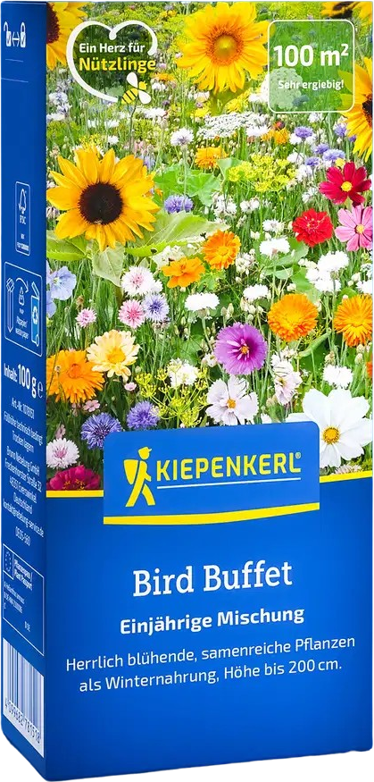 A mistura Bird Buffet traz cor e vida ao jardim e fornece às aves uma fonte natural de alimento no inverno. As plantas crescem até 200 cm de altura e oferecem um cenário floral variado que cria novos destaques ao longo do ano de jardinagem. Ideal para jardins naturais e amantes de aves.