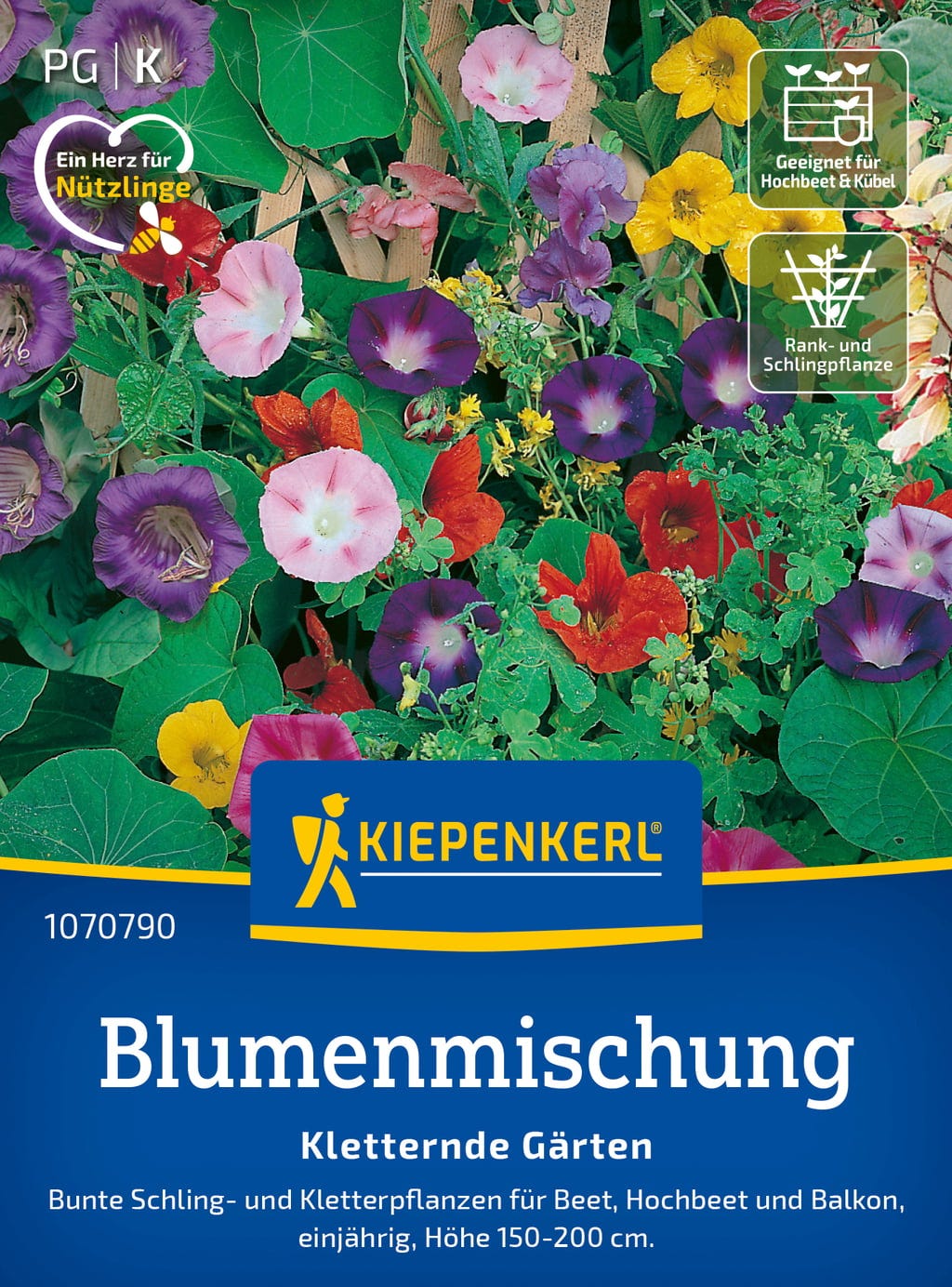 Seja como uma proteção visual natural e colorida ou como um destaque vibrante, esta mistura de flores encanta com a sua variedade de diferentes plantas trepadoras e volúveis de crescimento rápido. Ideal para treliças, pérgulas, vedações e suportes de escalada.