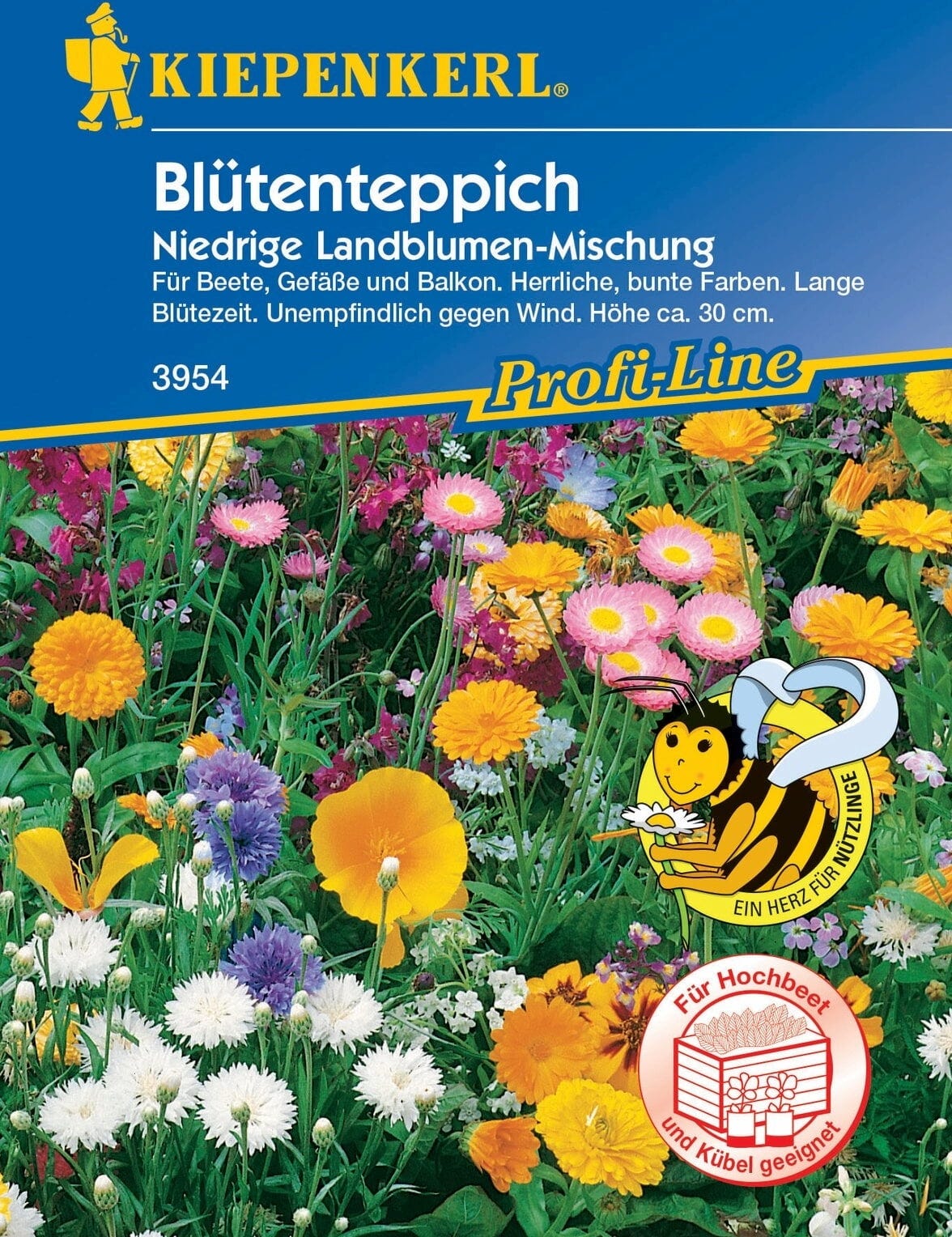 A mistura de flores Tapete de Flores é composta por flores de verão baixas e resistentes ao vento, que encantam com uma variedade de formas e cores de floração. Esta mistura anual é ideal para canteiros, canteiros elevados ou como um complemento colorido para uma horta.