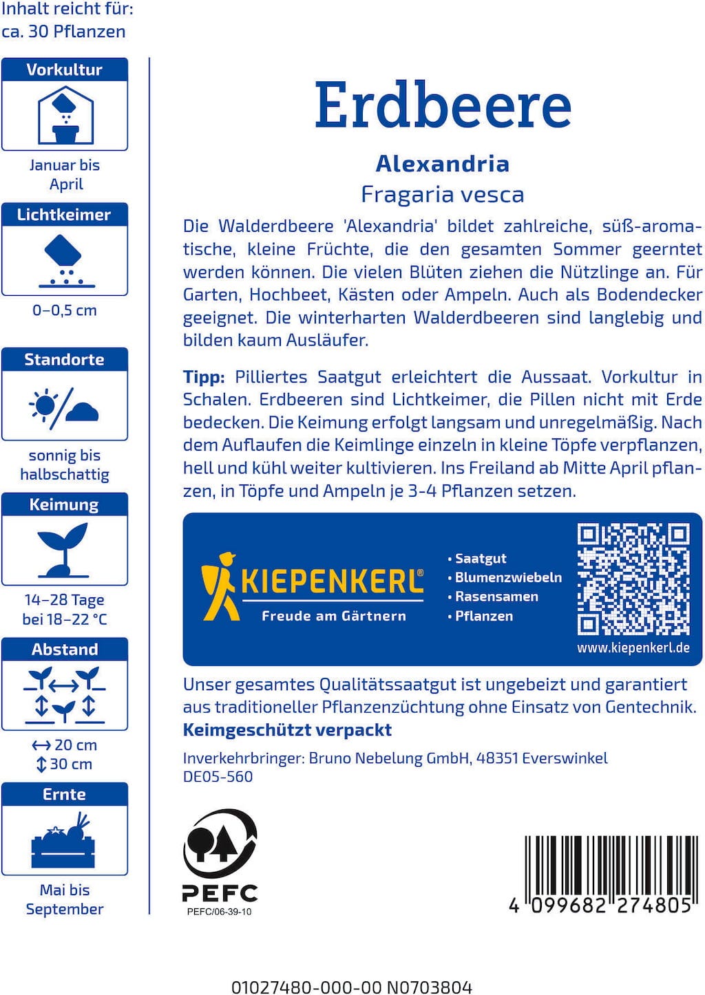 Kiepenkerl Morango Alexandria, Sementes Peletizadas