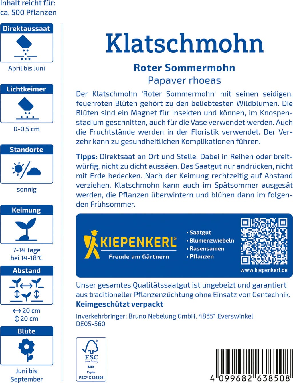 comentários em português para Kiepenkerl Papoila-comum "Roter Sommermohn"