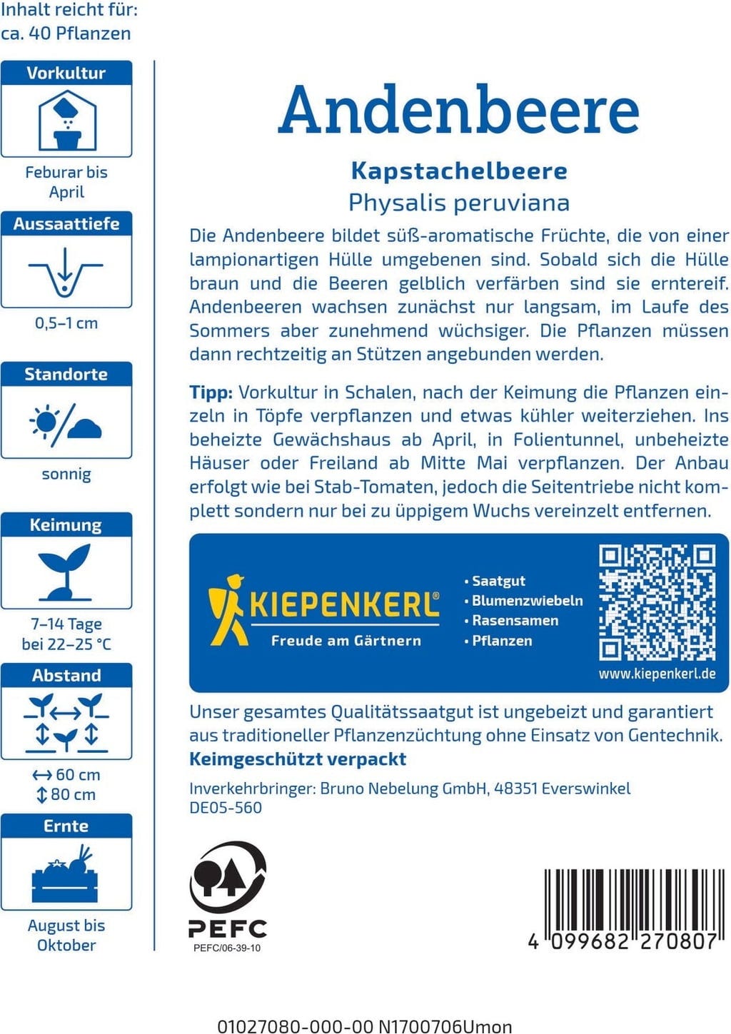 comentários em português para Kiepenkerl Physalis (Groselha do Peru)