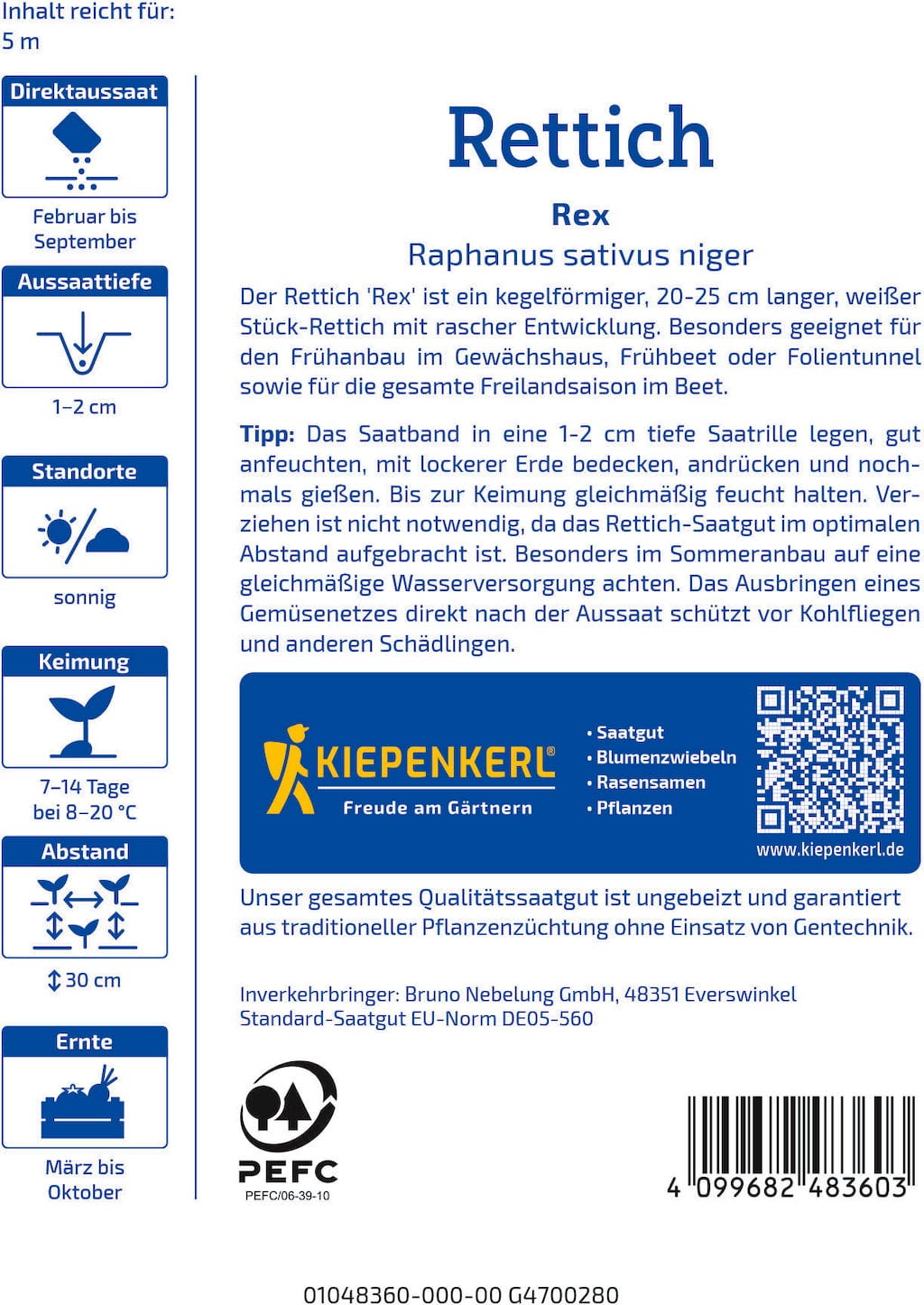 Kiepenkerl Rabanete Rex, Fita de Sementes