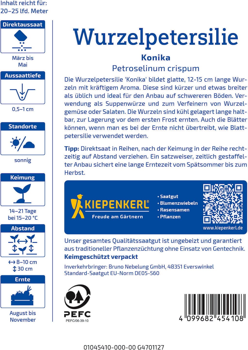 Esta variedade é particularmente adequada para solos pesados e forma raízes com até 15 cm de comprimento e um aroma intenso, que podem ser armazenadas durante muito tempo se forem colhidas antes da primeira geada. As folhas podem ser utilizadas como salsa de folha se forem colhidas com moderação.