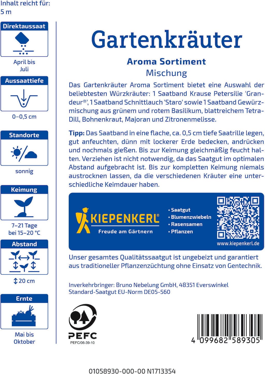 Kiepenkerl Sortimento de Ervas Aromáticas de Jardim, Fita de Sementes