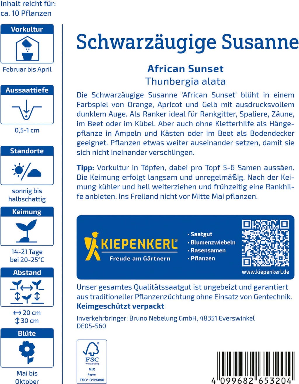 | Tempo de germinação: | 2–3 semanas |