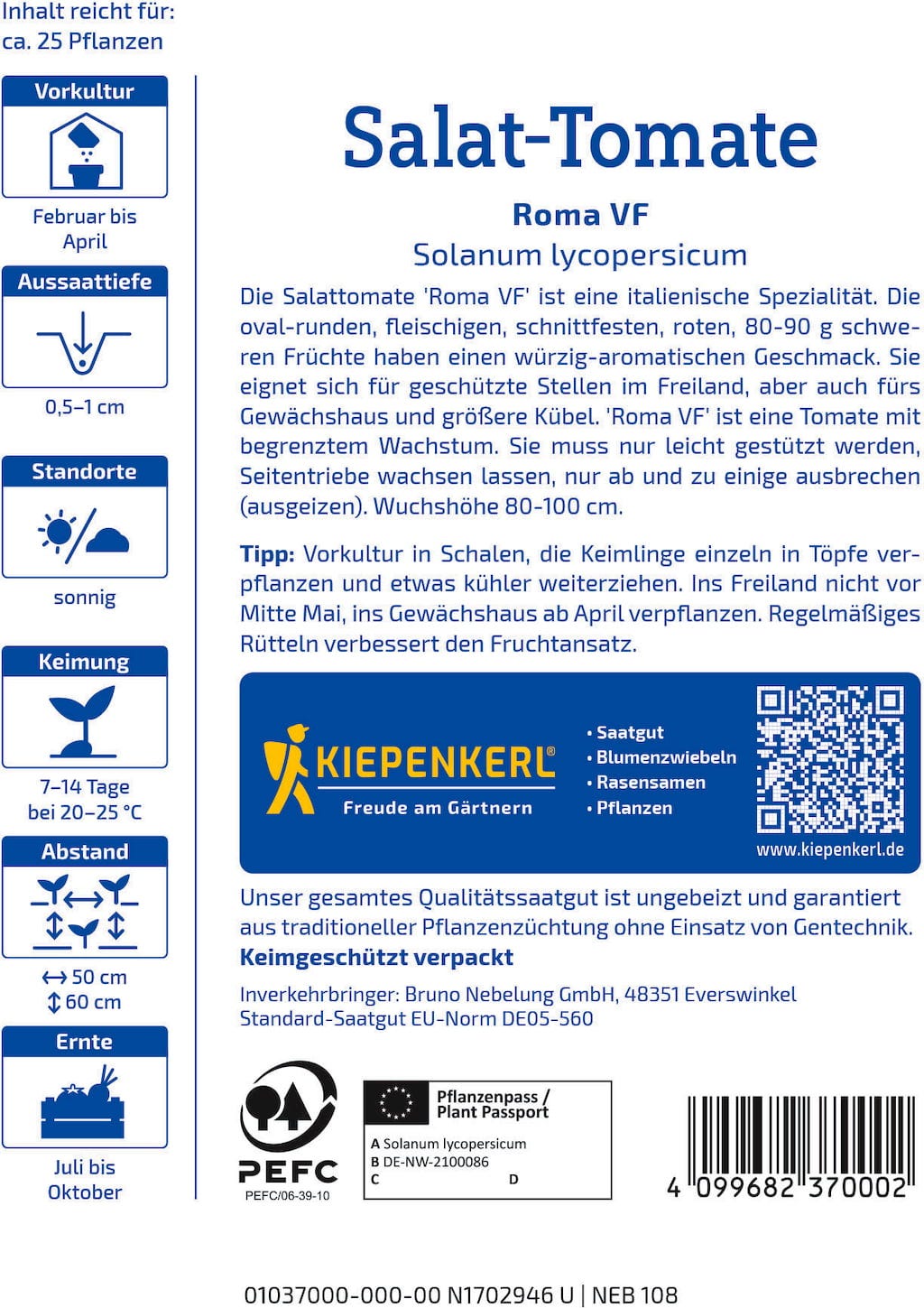 comentários em português para Kiepenkerl Tomate de Salada Roma VF