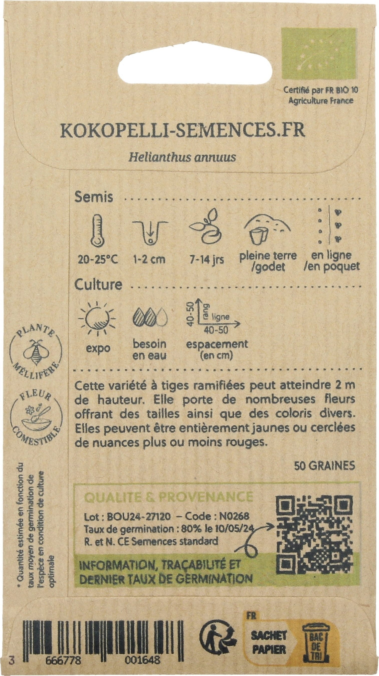 | Fabricante: | Association Kokopelli, 7 Route de Sabarat, Foret de Castagnes, 09290, Le Mas D'Azil, França, professionnels@kokopelli-semences.fr, www.kokopelli-semences.fr |